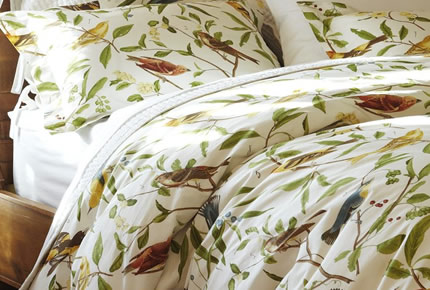 De algodón orgánico puro con estampado de pájaros, flores y mariposas.