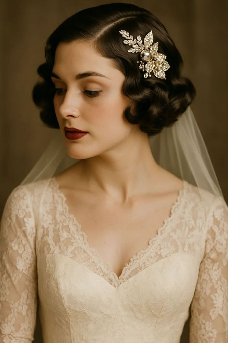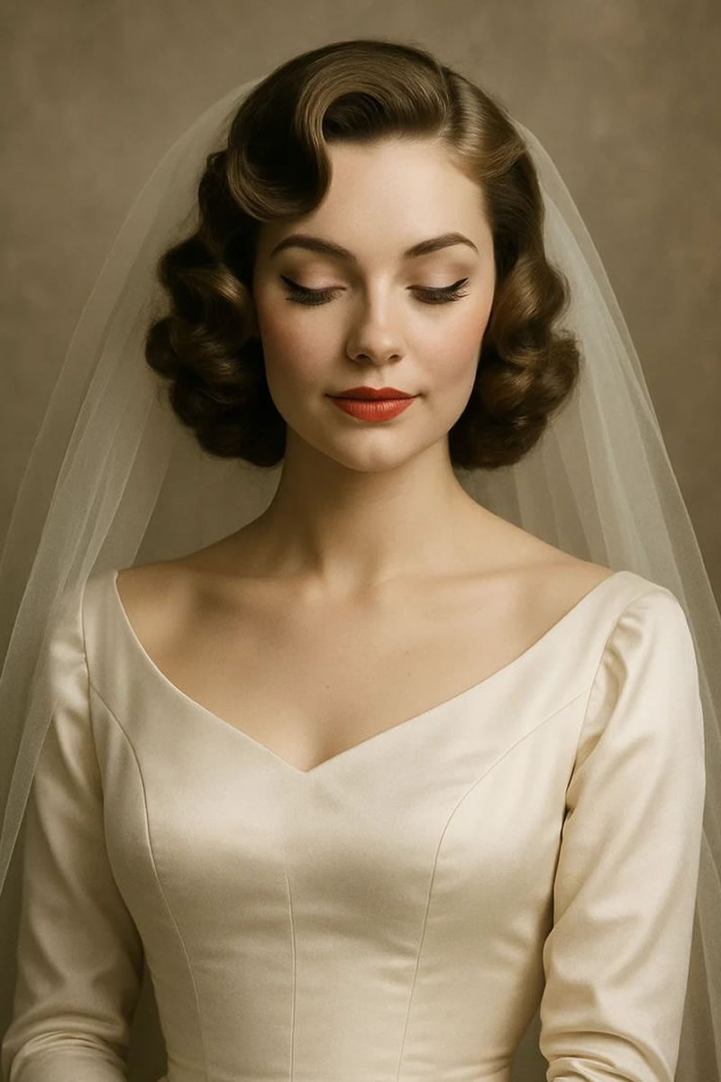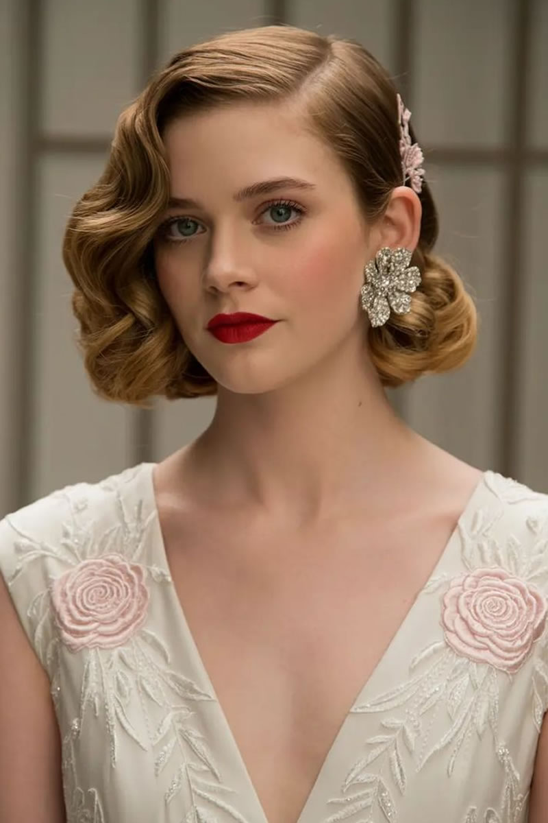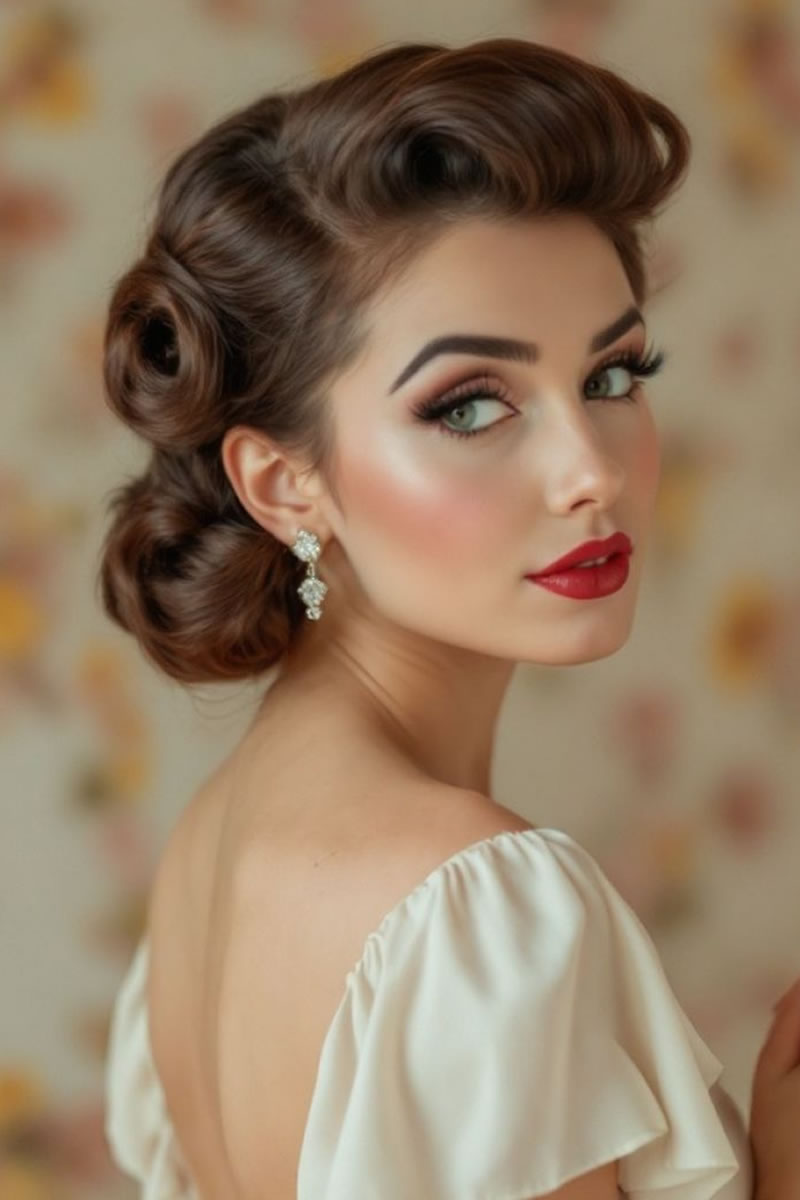 Las ideas de peinados de novia retro incluyen ondas de dedos y ondas en forma de S inspiradas en la década de los veinte, recogidos clásicos como moños y recogidos, y accesorios como velos de jaula o diademas vintage. Otras opciones son rizos voluminosos, mechones recogidos y cortes cortos con ondas de dedos para evocar diferentes épocas vintage. Elige accesorios y un peinado que complementen la época vintage específica que estás retratando y tu estilo de vestir.