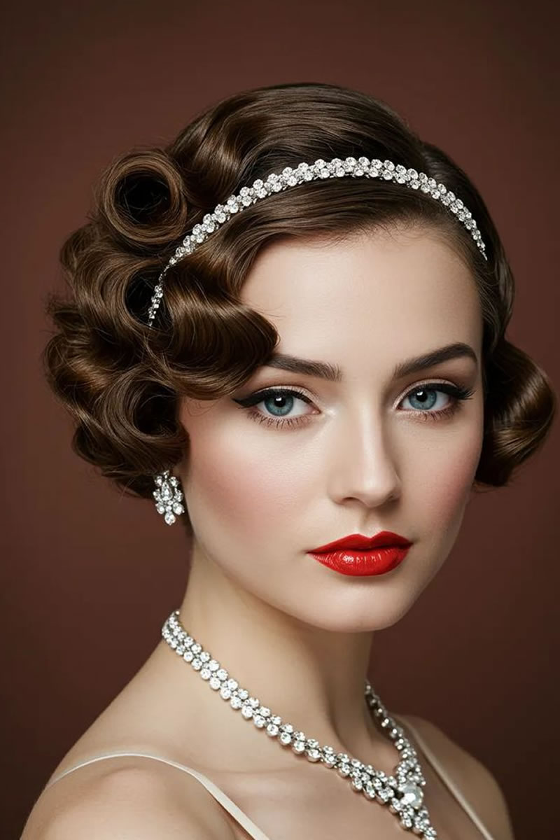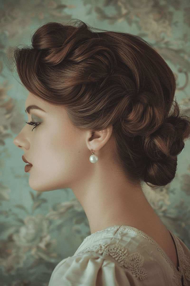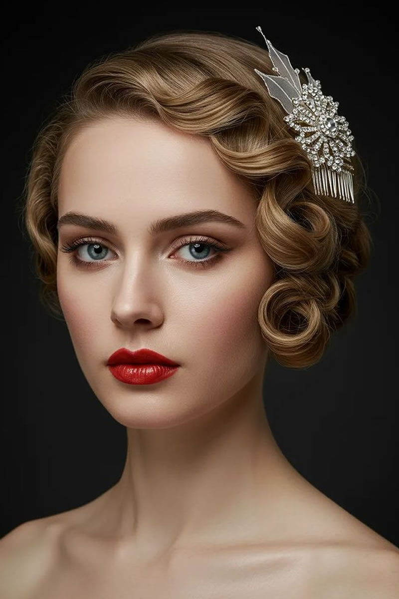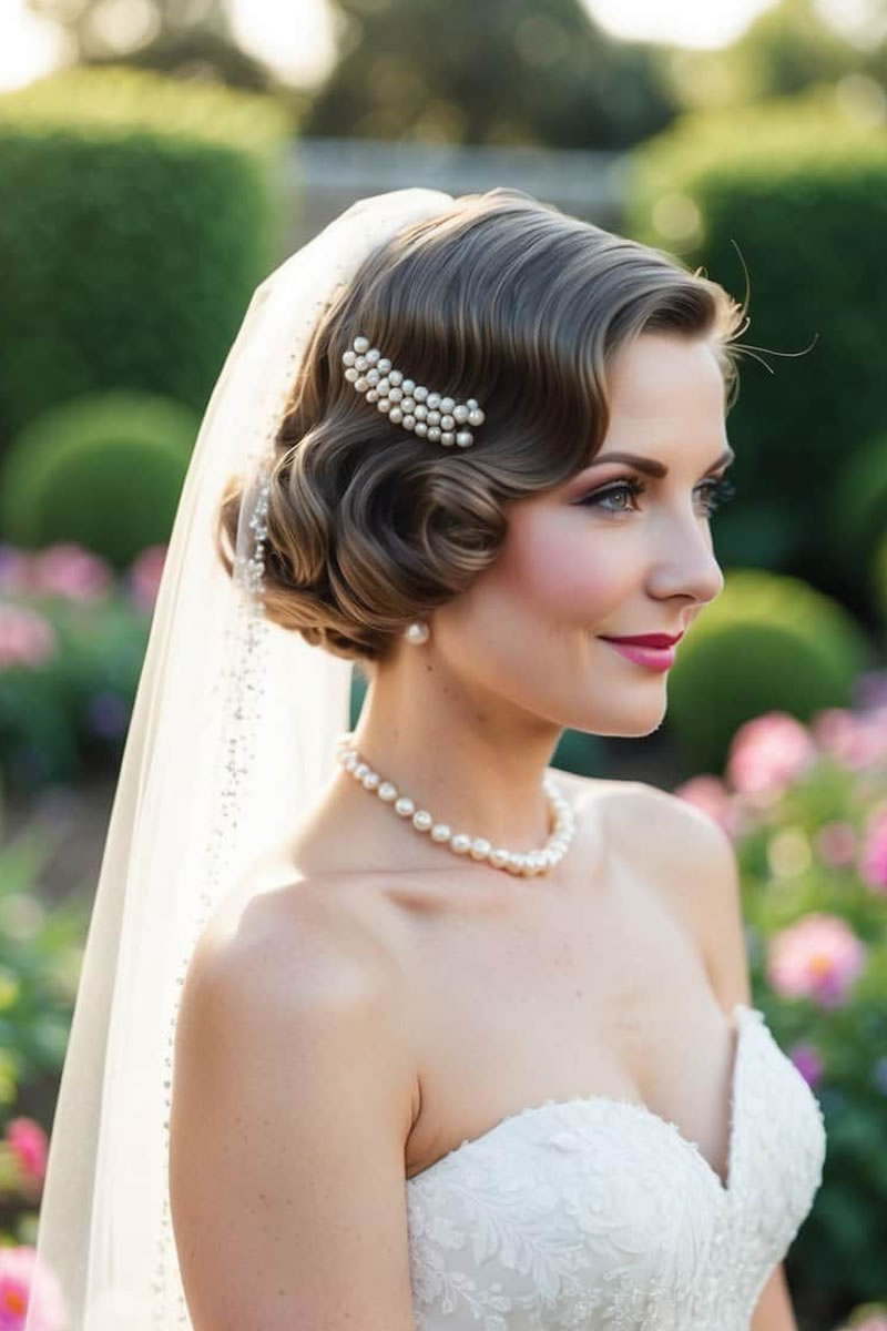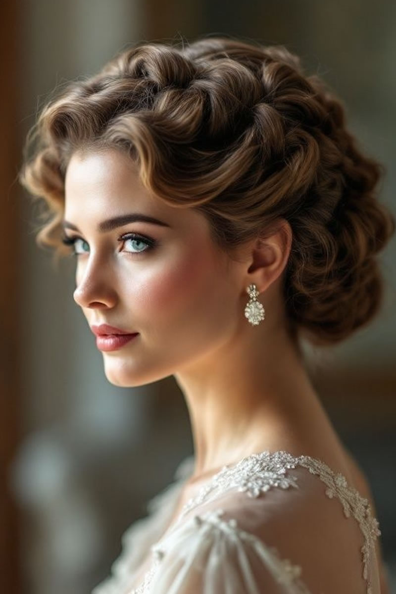 Las ideas de peinados de novia retro incluyen ondas de dedos y ondas en forma de S inspiradas en la década de los veinte, recogidos clásicos como moños y recogidos, y accesorios como velos de jaula o diademas vintage. Otras opciones son rizos voluminosos, mechones recogidos y cortes cortos con ondas de dedos para evocar diferentes épocas vintage. Elige accesorios y un peinado que complementen la época vintage específica que estás retratando y tu estilo de vestir.