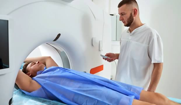 Los escáneres de tomografía utilizan rayos X, generalmente en tomografías multidetector modernas. La exposición a radiación es baja —similar a la de una mastografía bilateral— y no se necesita contraste intravenoso.