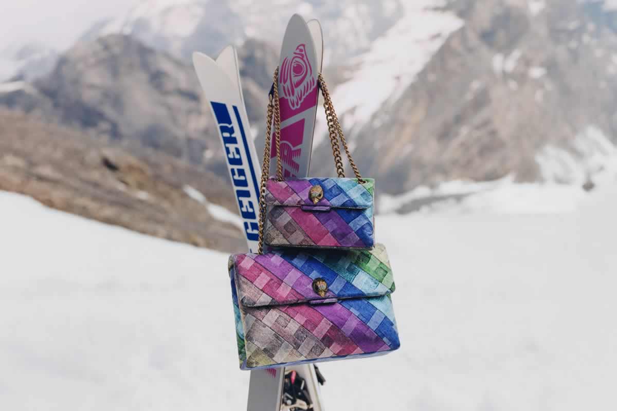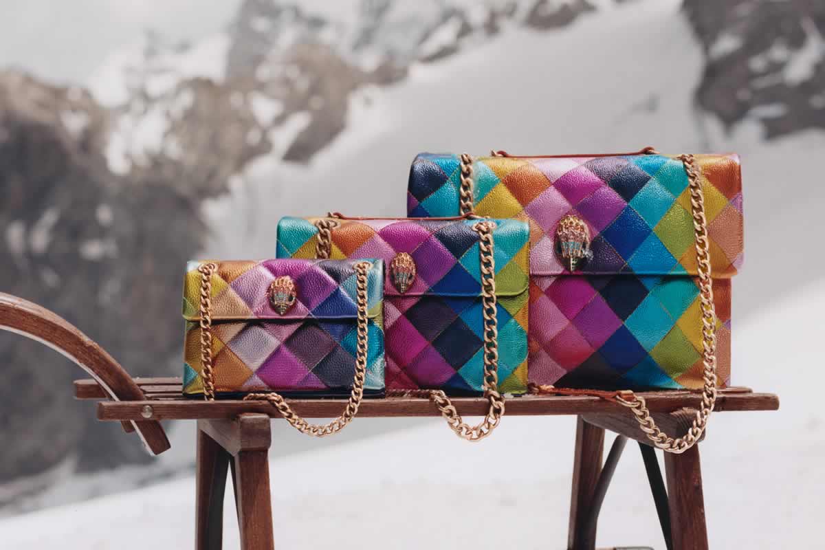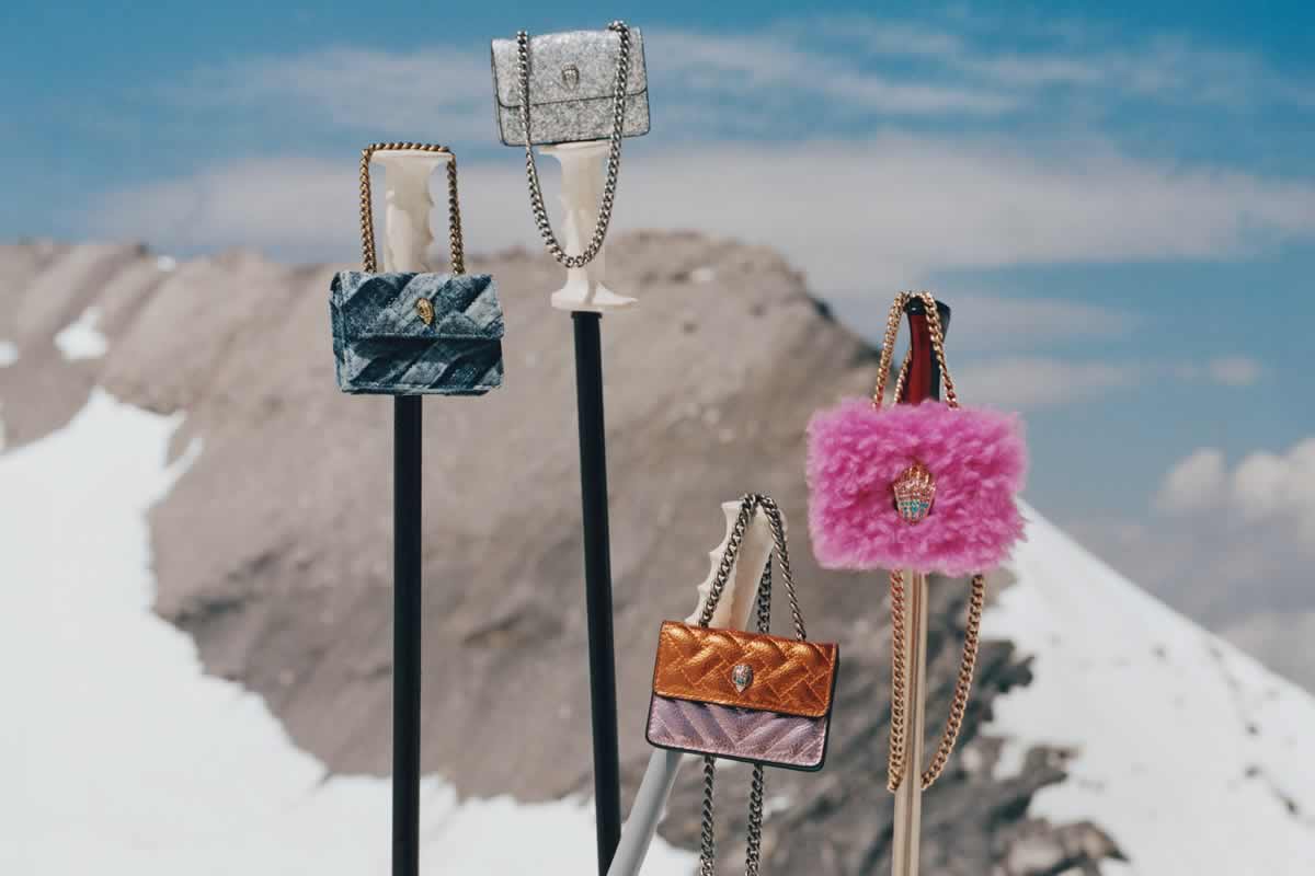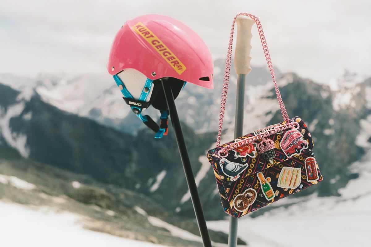 Con el cielo azul como telón de fondo y un brillante paisaje alpino, la fotógrafa Laura Carlson captura con maestría las nuevas y audaces siluetas, los colores impactantes y los llamativos adornos de la última colección de accesorios de Kurt Geiger.
