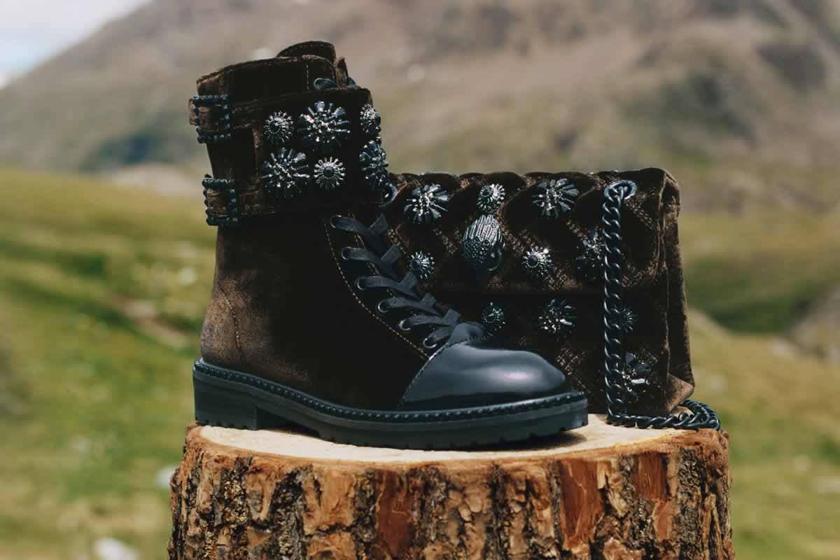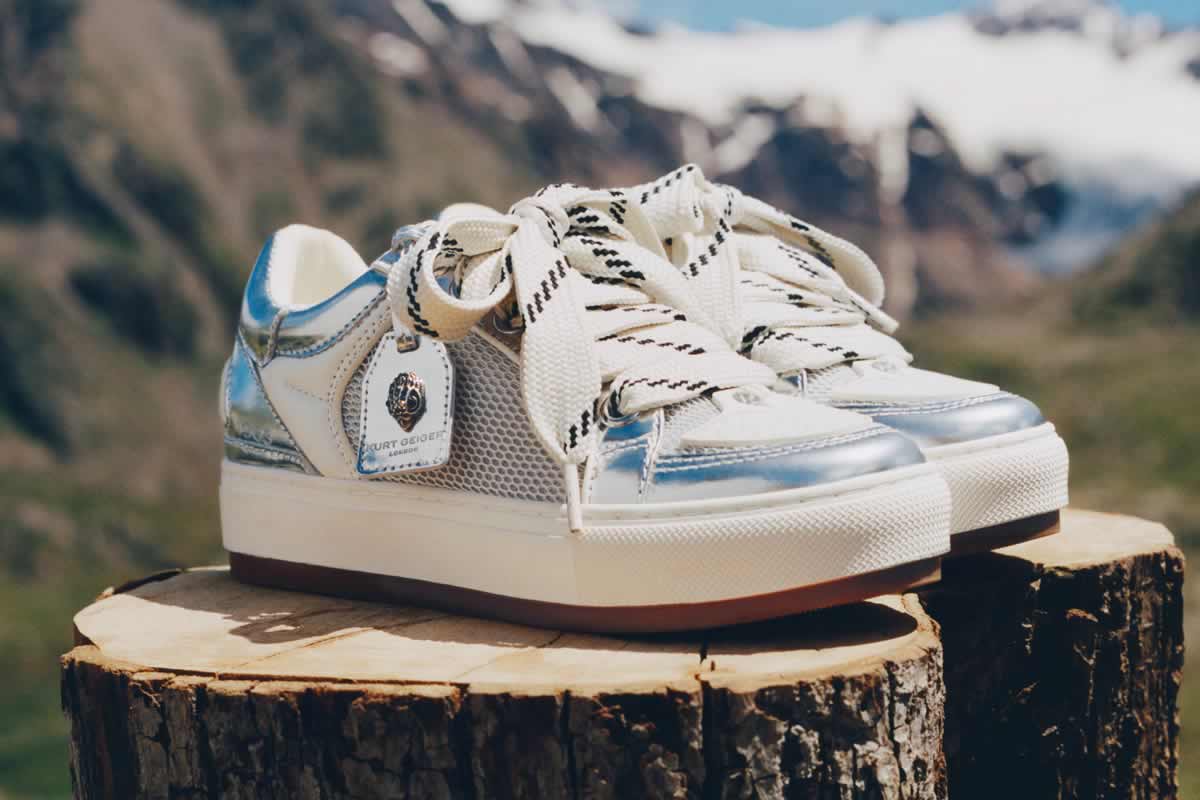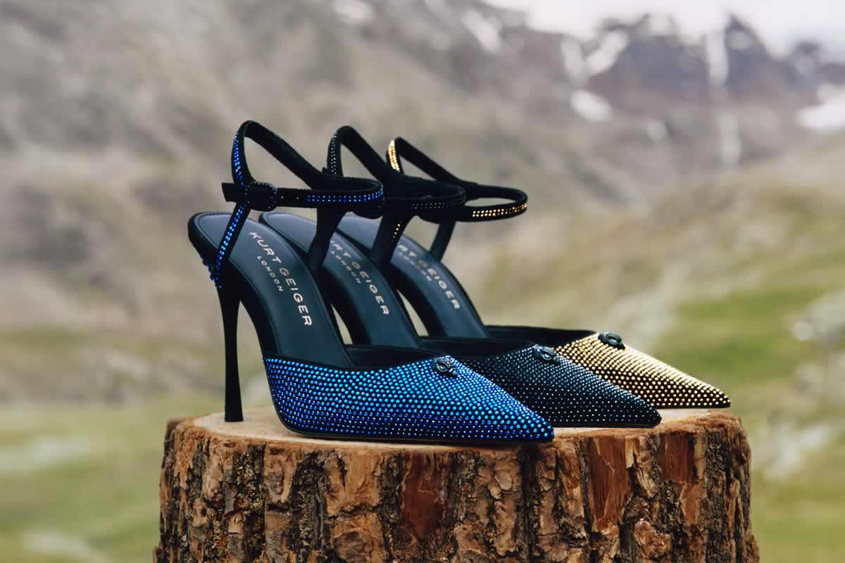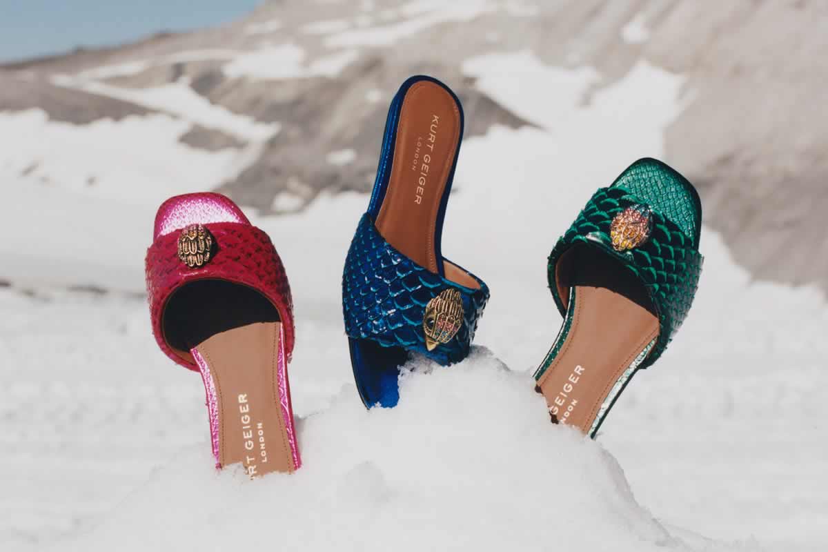 Con el cielo azul como telón de fondo y un brillante paisaje alpino, la fotógrafa Laura Carlson captura con maestría las nuevas y audaces siluetas, los colores impactantes y los llamativos adornos de la última colección de accesorios de Kurt Geiger.