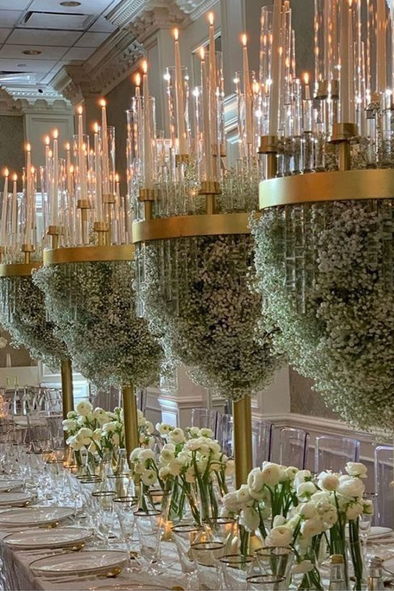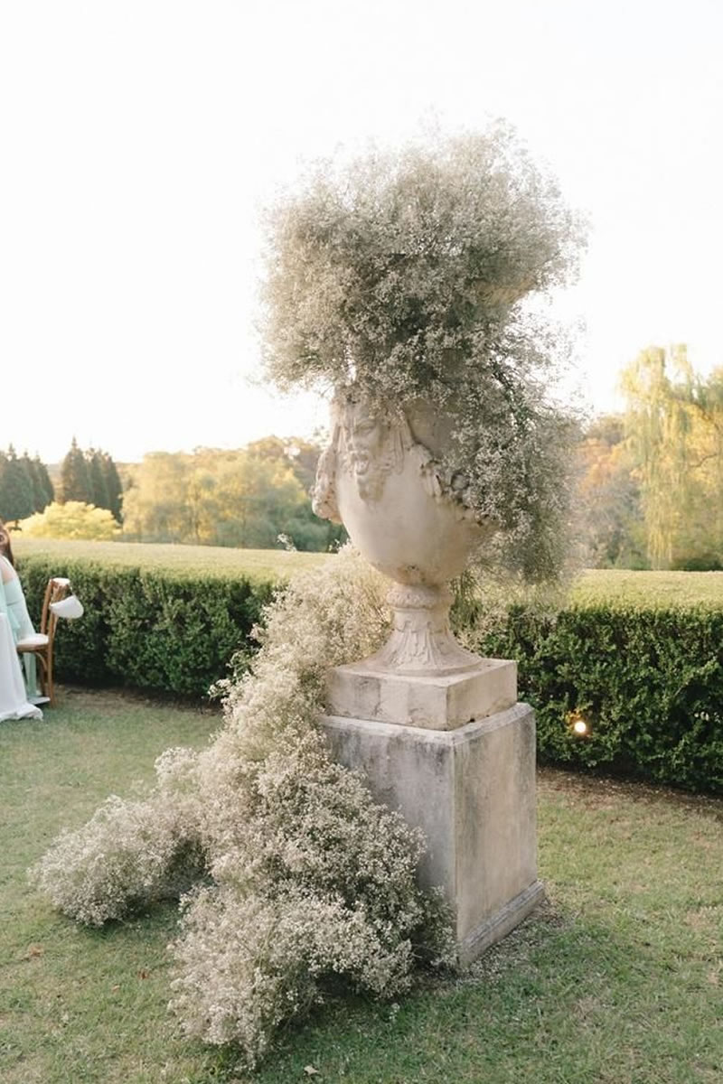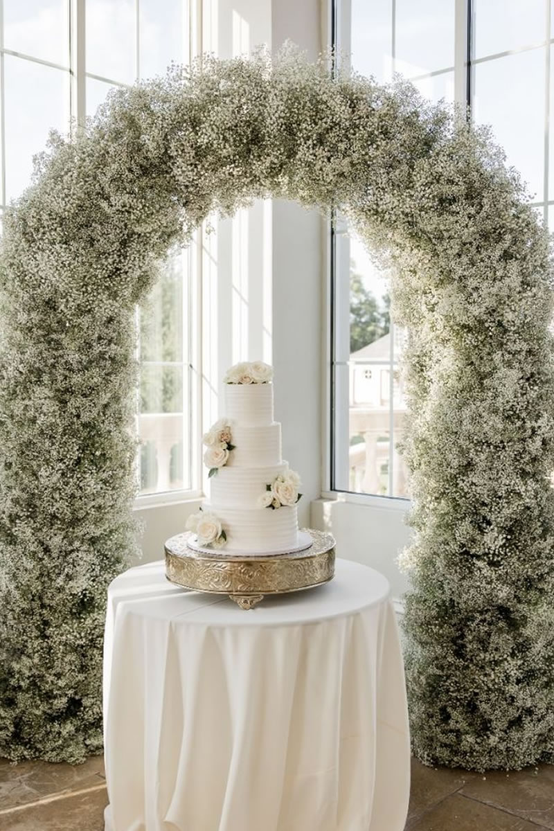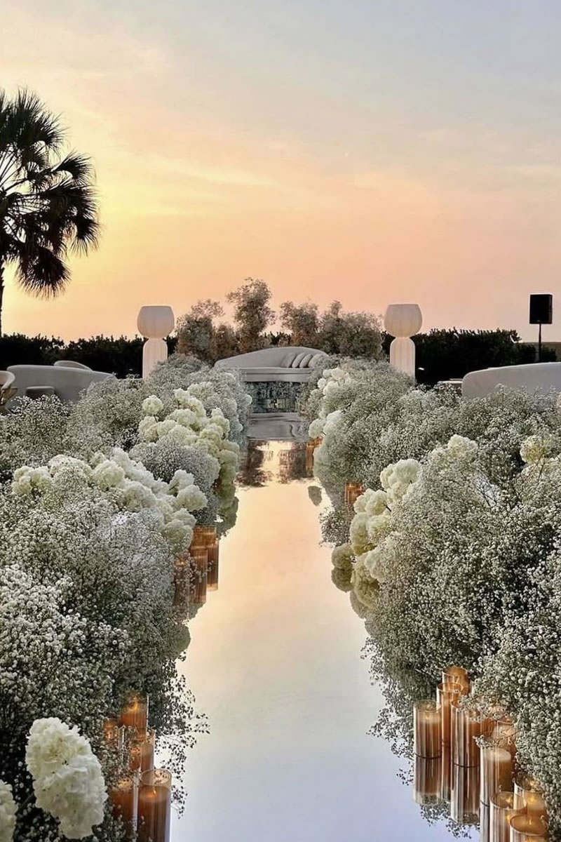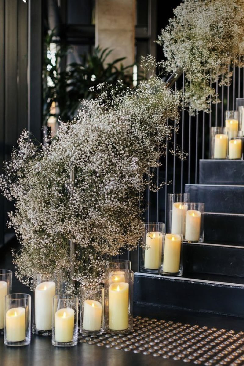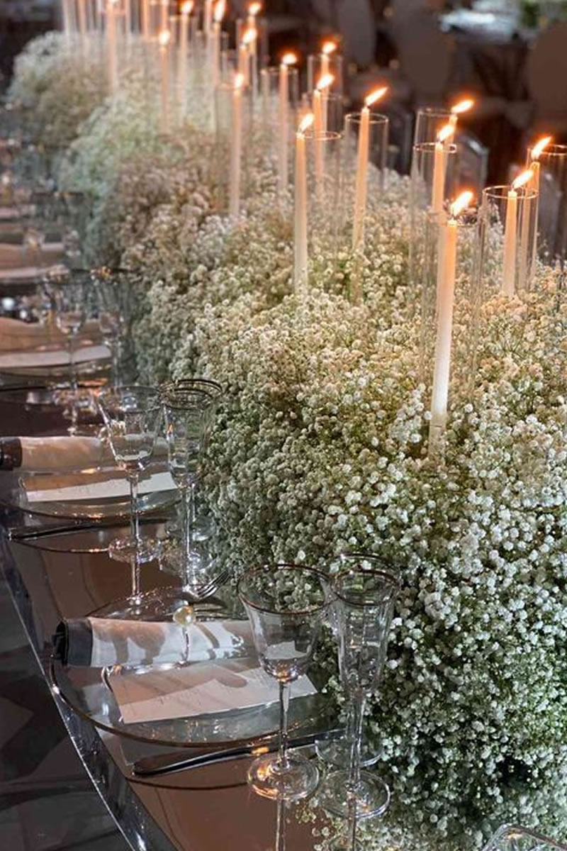 La paniculata se puede usar de muchas maneras en una boda, incluyendo la decoración de la ceremonia, por ejemplo, como marcadores de pasillo y arreglos para el altar; para la decoración de la recepción a través de centros de mesa, guirnaldas, estructuras flotantes o adornos para el pastel, incluso en ramos, azahares y coronas de flores. Dependiendo de la estética de la celebración, podrás lograr un ambiente romántico, rústico o elegante. Dale un vistazo a estas ideas.