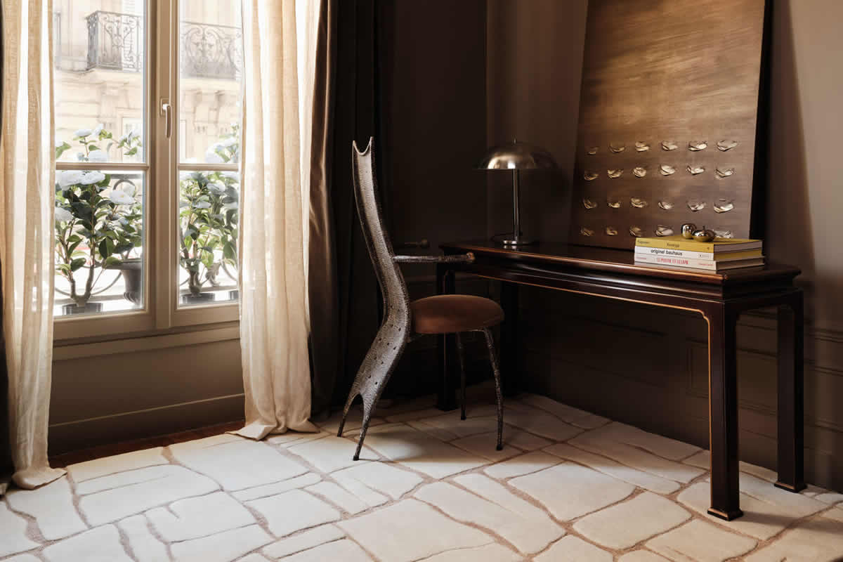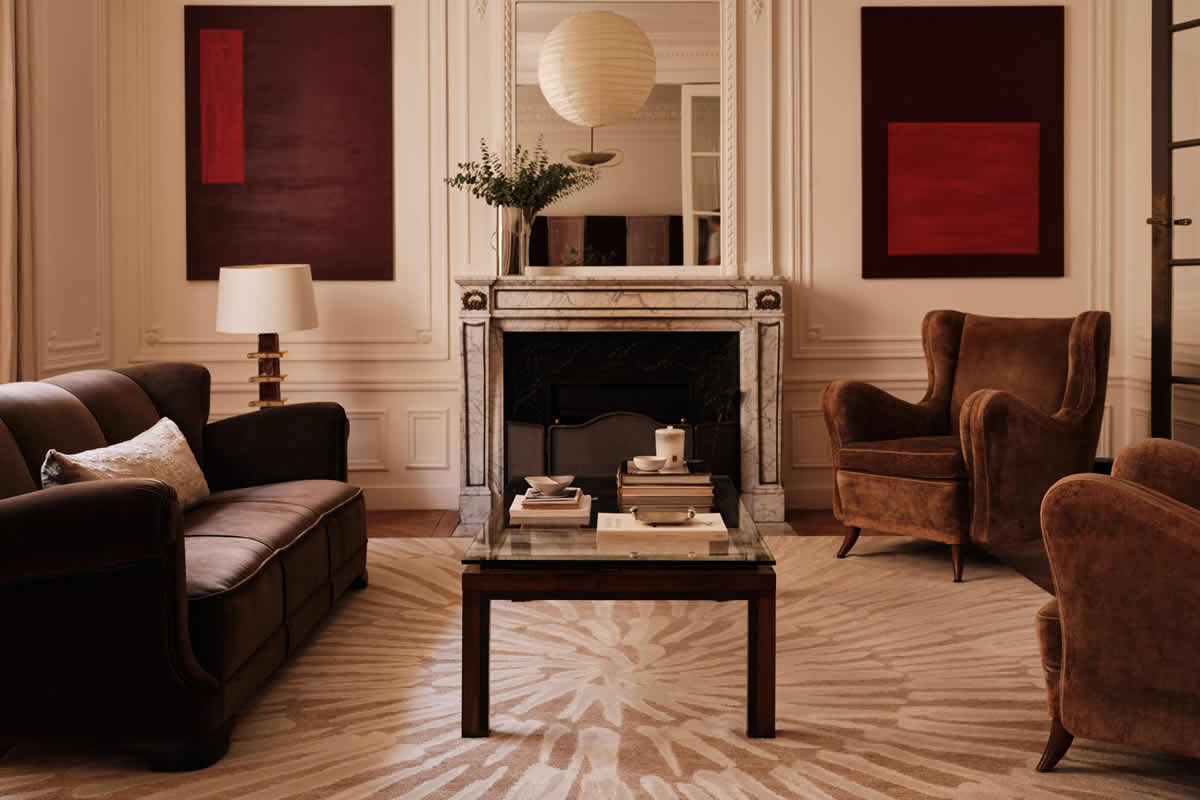 Desde dormitorios que invitan al descanso hasta salones que se transforman en refugios acogedores, la colección “Superficie y Quietud” reinterpreta la belleza del movimiento natural a través de materiales nobles como la seda, la lana y el cáñamo. Inspirada en las mareas, los patrones del viento y las dunas cambiantes, cada alfombra anudada a mano revela un paisaje textil único. Sus relieves y matices capturan la armonía entre la calma y la energía, explorando topografías abstractas que evocan una tensión sutil pero profundamente equilibrada.