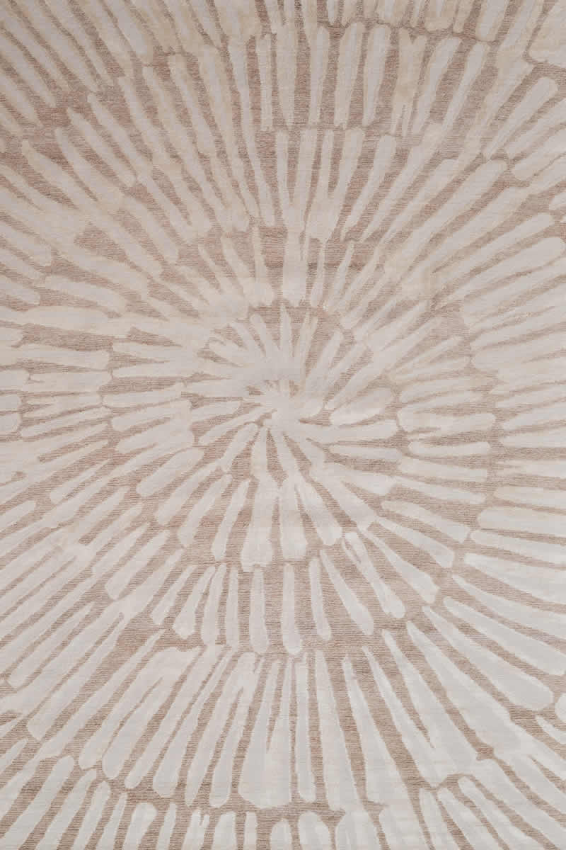 Es un diálogo entre estructura y espontaneidad, donde la silenciosa matemática del mundo natural se plasma en cada hilo. En conjunto, la colección celebra la belleza imperfecta de la naturaleza y su capacidad para inspirar calma, equilibrio y conexión. Más que piezas decorativas, estas alfombras son paisajes tejidos que transforman los interiores en escenarios de serenidad y expresión artística.
