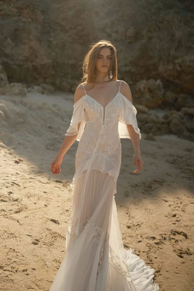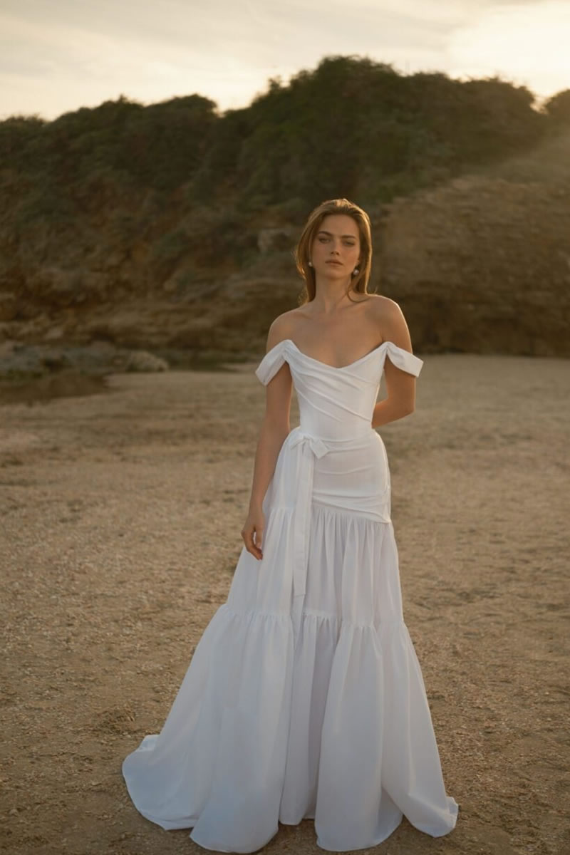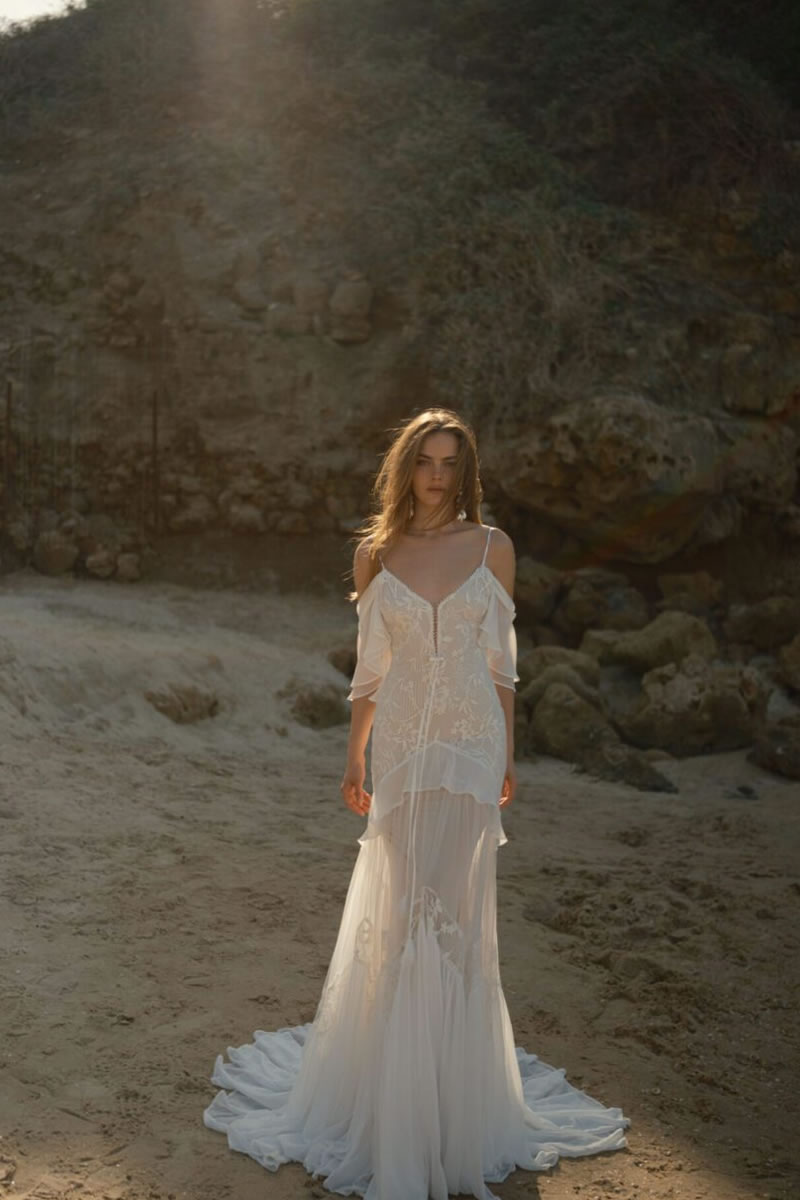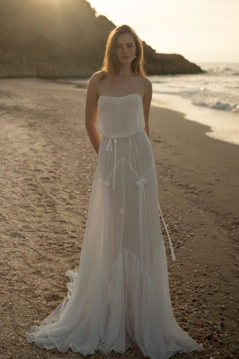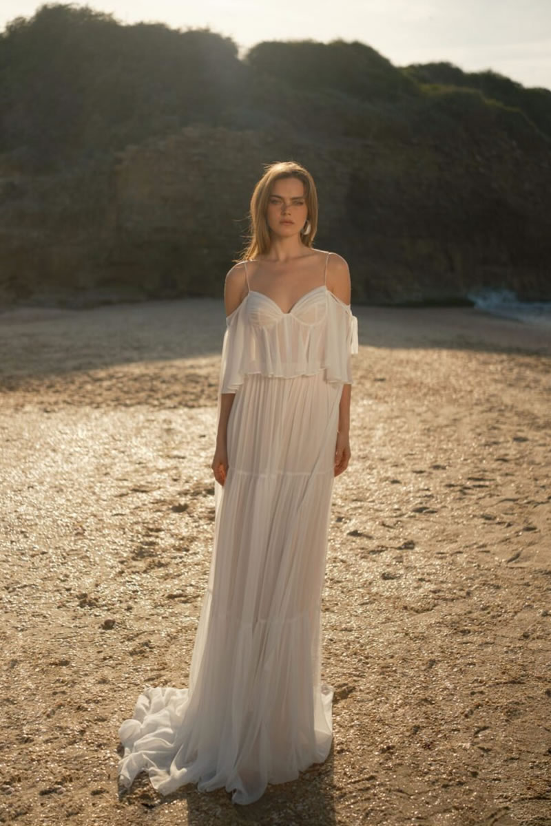 La más reciente apuesta nupcial captura a la perfección la calma y la fluidez del viento. Dale un vistazo y encuentra aquí el vestido de tus sueños.