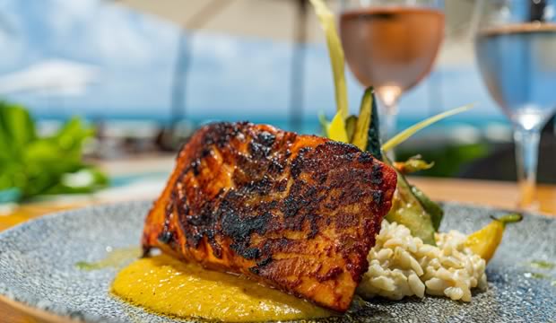 La gastronomía juega un papel protagónico gracias al restaurante Fuego, donde los sabores frescos del mar se convierten en un banquete inolvidable. Cada platillo, cada detalle de la mesa y cada copa compartida bajo las estrellas elevan la celebración a un nivel mágico.