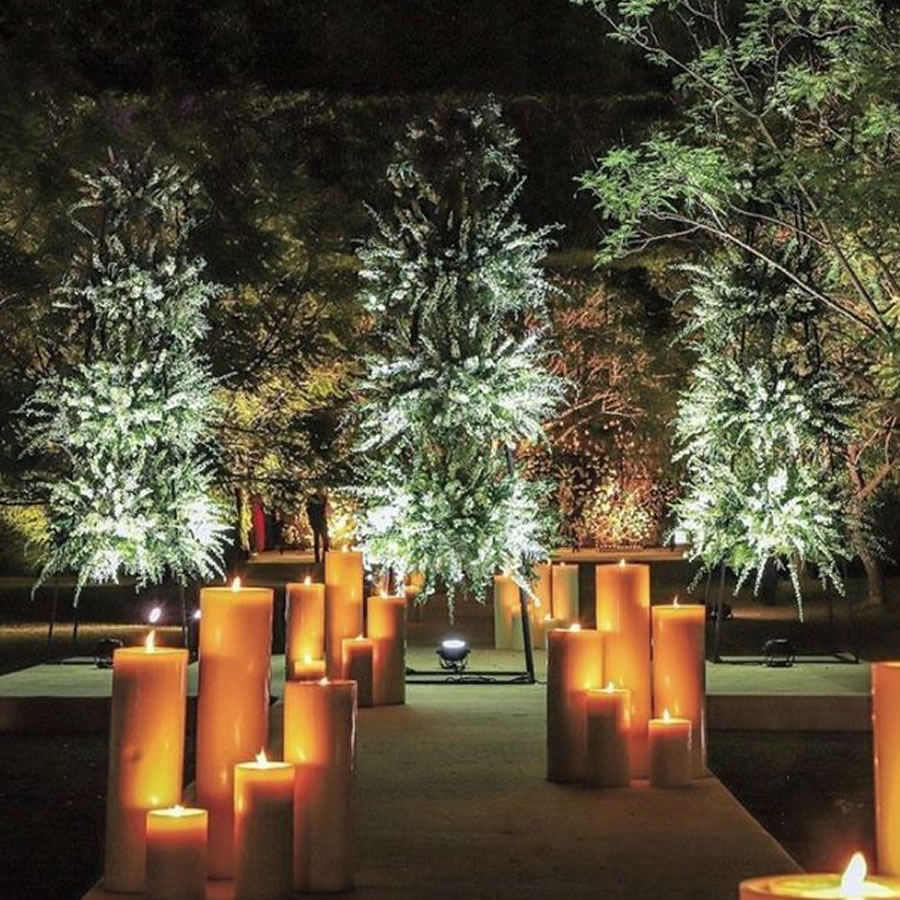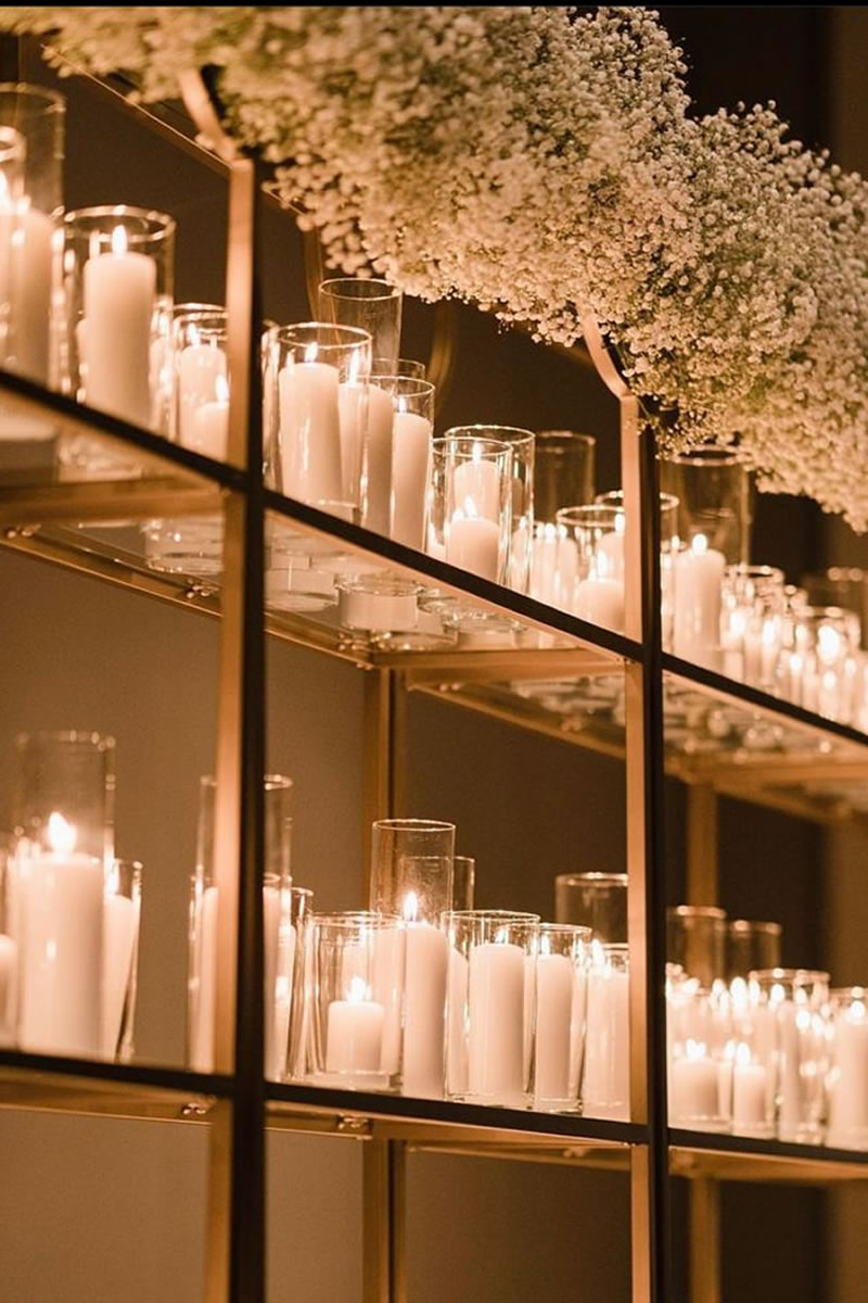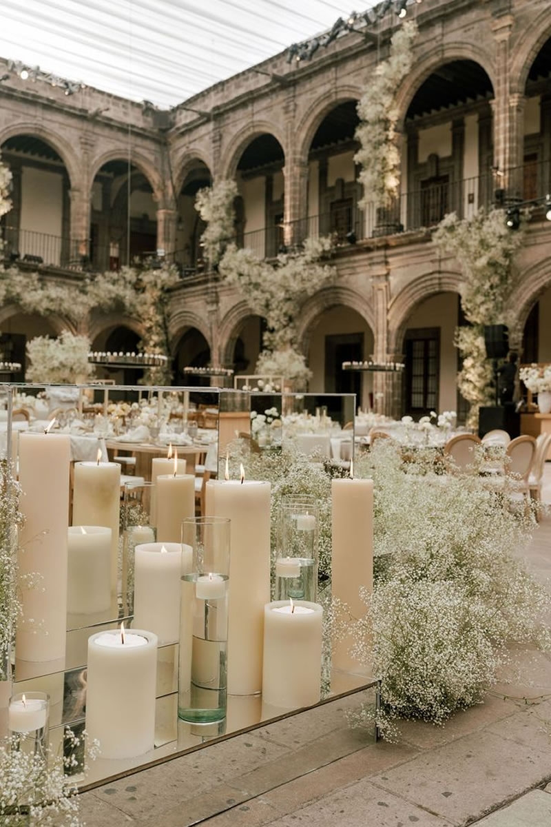 Desde decorar el área de ceremonia, los pasillos o añadir el toque romántico a los centros de mesa, hasta crear muros de velas o realzar algún espacio en particular del venue, las velas crean esa atmósfera mágica y llena de romanticismo en cualquier época del año.