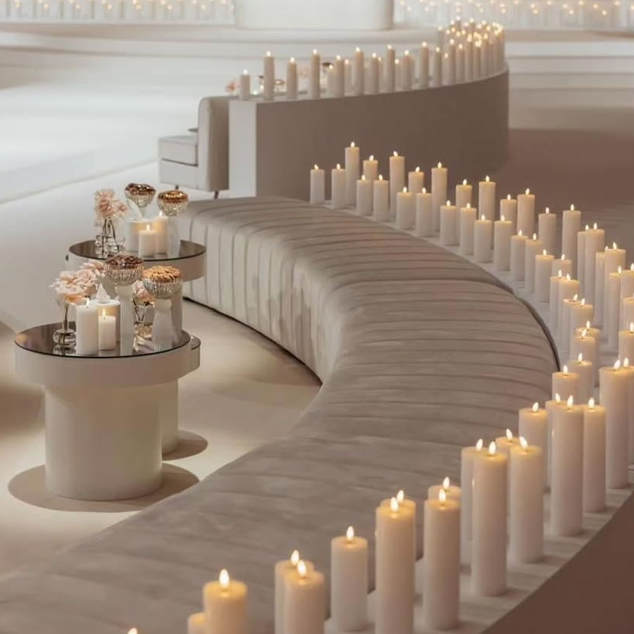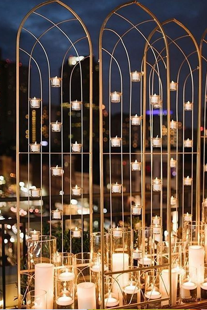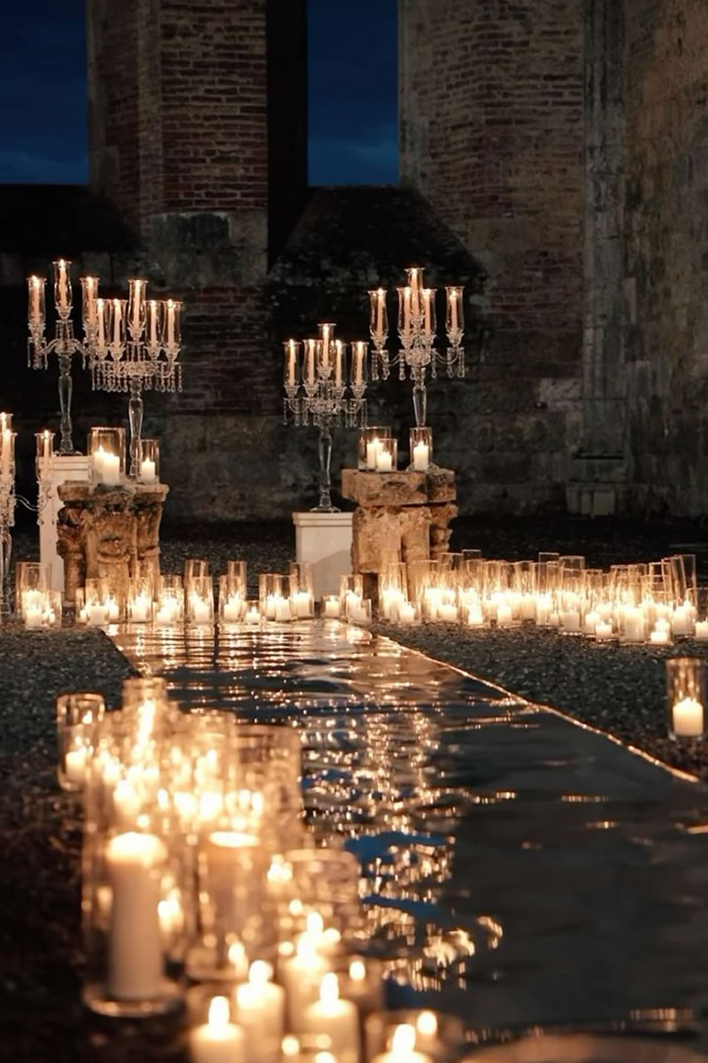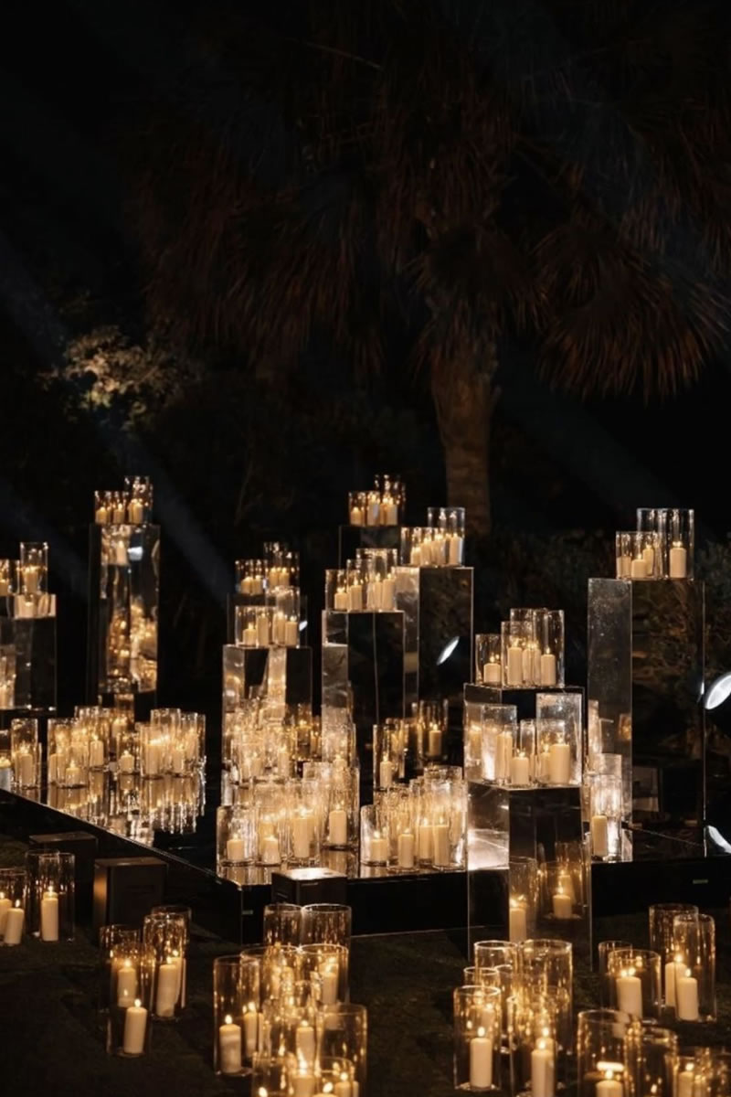 Desde decorar el área de ceremonia, los pasillos o añadir el toque romántico a los centros de mesa, hasta crear muros de velas o realzar algún espacio en particular del venue, las velas crean esa atmósfera mágica y llena de romanticismo en cualquier época del año.