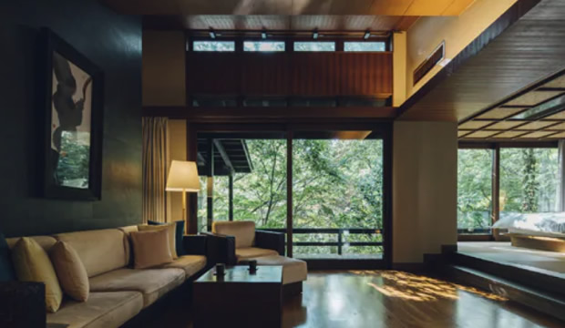 Kai Aso es un íntimo ryokan de aguas termales ubicado en Oita Senomoto Onsen, dentro de un Global Geopark, con solo doce villas privadas que se extienden sobre una inmensa caldera y que cuentan cada una con su propio baño onsen al aire libre. Aquí, las tinas se alimentan de dos manantiales volcánicos dentro de la propiedad y se ubican en terrazas rodeadas de naturaleza, donde las aguas suaves para la piel se disfrutan junto con la brisa del bosque. Por la noche, los huéspedes pueden participar en un programa dedicado a conocer el entorno natural único que se ha formado en la caldera, mientras degustan cócteles originales como mojitos de shochu; y al atardecer, la cena kaiseki presenta la carne de res producida en las llanuras de la caldera, maridada con vegetales de temporada y servida en un restaurante con vistas panorámicas del paisaje. Todas las habitaciones son villas de la firma KAI, diseñadas para que los visitantes se sumerjan por completo en la atmósfera natural y cultural de Aso.