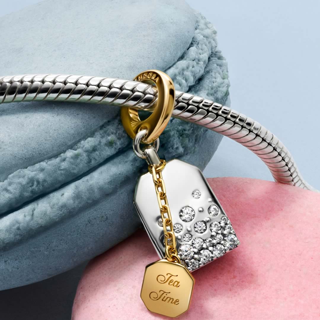 Fabricada en plata esterlina 100% reciclada y chapado en oro de 14k, la colección combina zirconias cúbicas cuidadosamente seleccionadas, acentos de cristal y perlas cultivadas. La colección Pandora x Bridgerton estará disponible en tiendas Pandora y en línea a partir del 15 de enero de 2026.