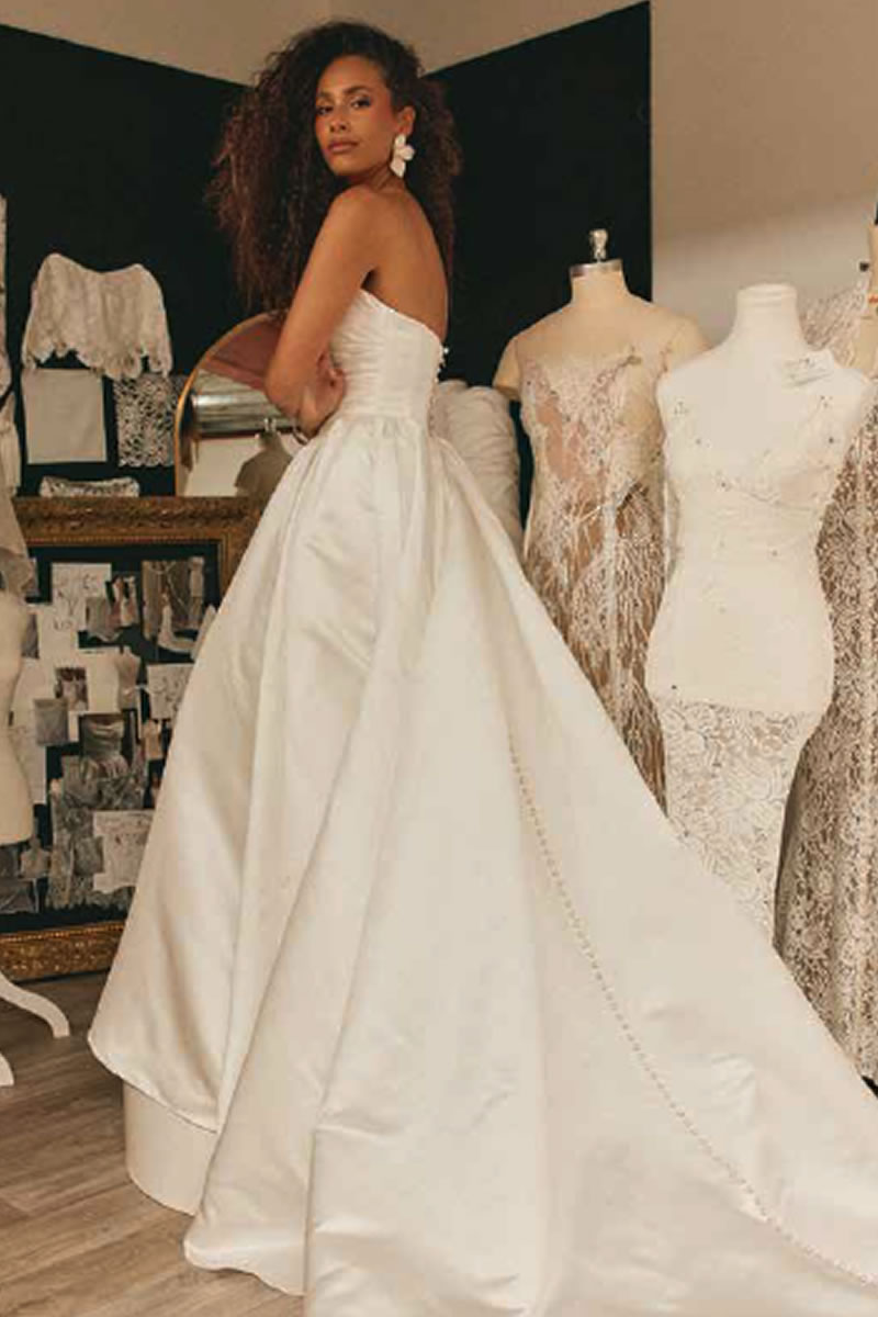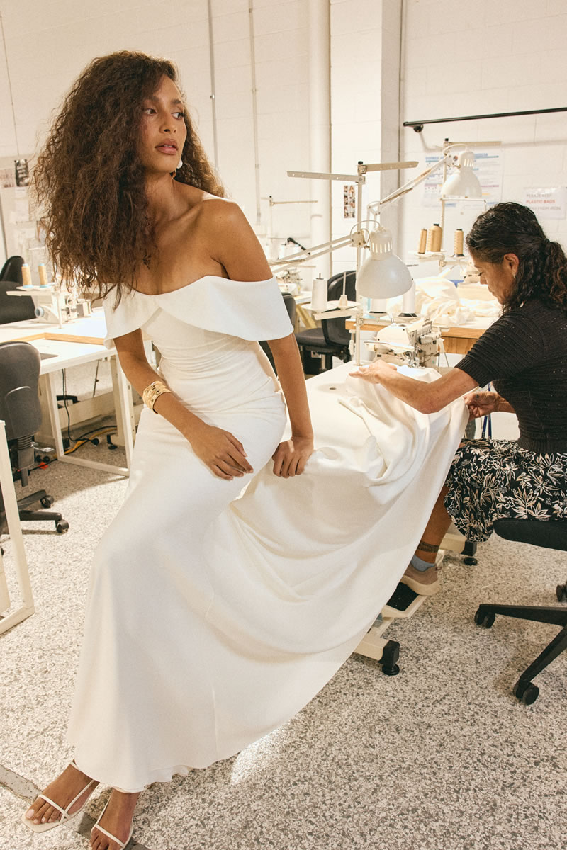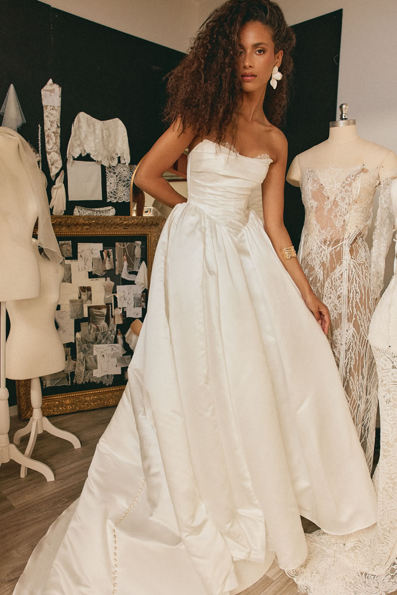 Confeccionada íntegramente en el taller de diseño australiano de Grace Loves Lace, la colección reinventa tres estilos icónicos: Lauren, Juliette y James, en un refinado crepé blanco roto, un tono «casi blanco» que se alinea con el Color del Año de Pantone y refleja una tendencia más amplia hacia tonos neutros más suaves y cálidos. Diseñado para favorecer a todo tipo de piel, este tono ofrece una alternativa moderna al blanco nupcial tradicional. Cada vestido presenta fajas ocultas y precisión que se adapta al cuerpo, creando vestidos minimalistas pero imponentes que favorecen a todas las siluetas. En el centro se encuentra Vittoria, un vestido de corte A con un pronunciado talle vasco y un corpiño plisado de ojo de gato, que combina volumen, estructura y romanticismo en un vestido inolvidable. ¡