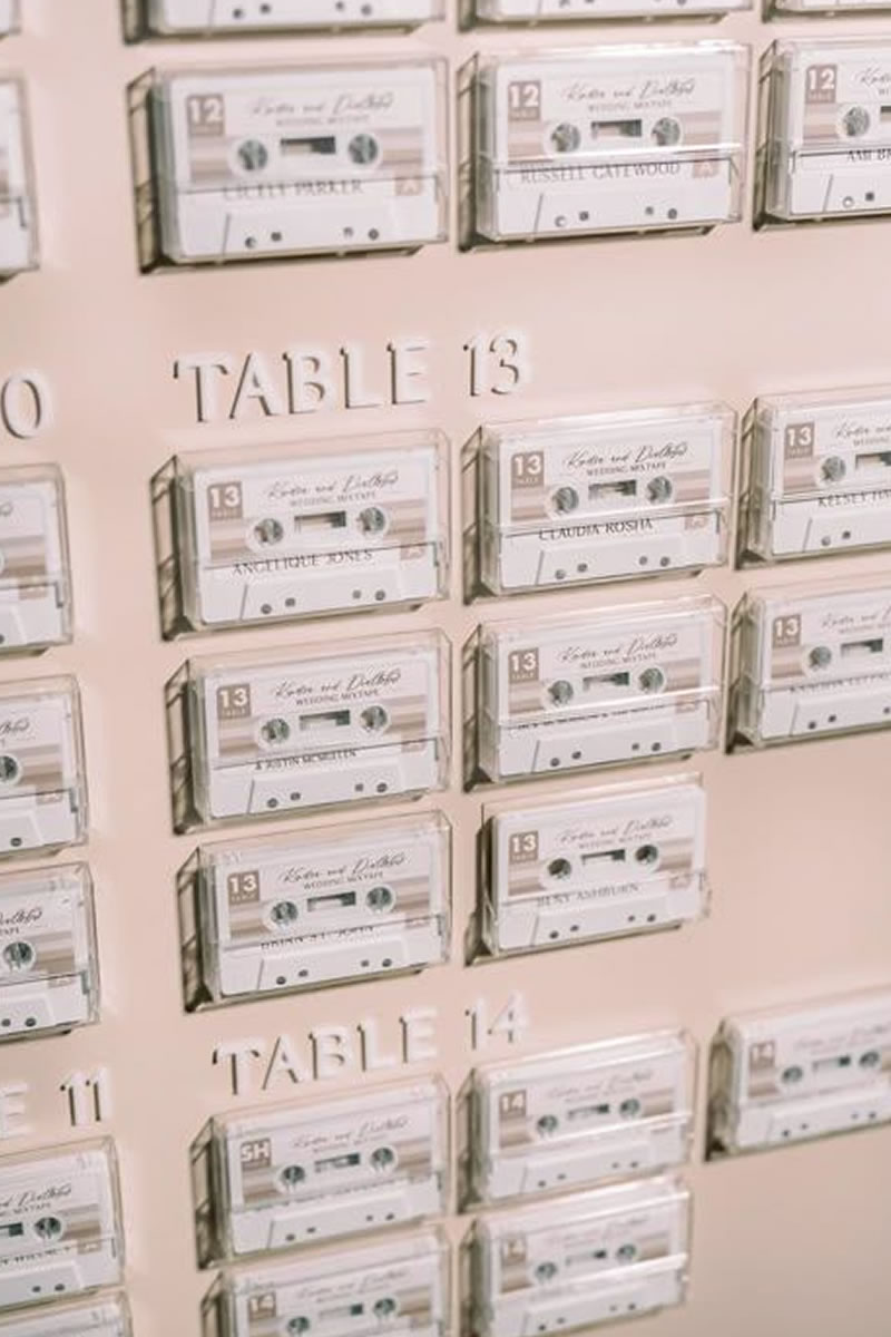 Piensa en materiales inesperados como panderos, luces de bengala, pulseras, galletas de la suerte y hasta figuras de origami, casettes o tarjetas de loteria. El plano de acomodo de lugar se convertirá en el lugar más instagrameable de la recepción de bodas. Dale un vistazo a estas ideas ¡y toma un poco de inspiración!