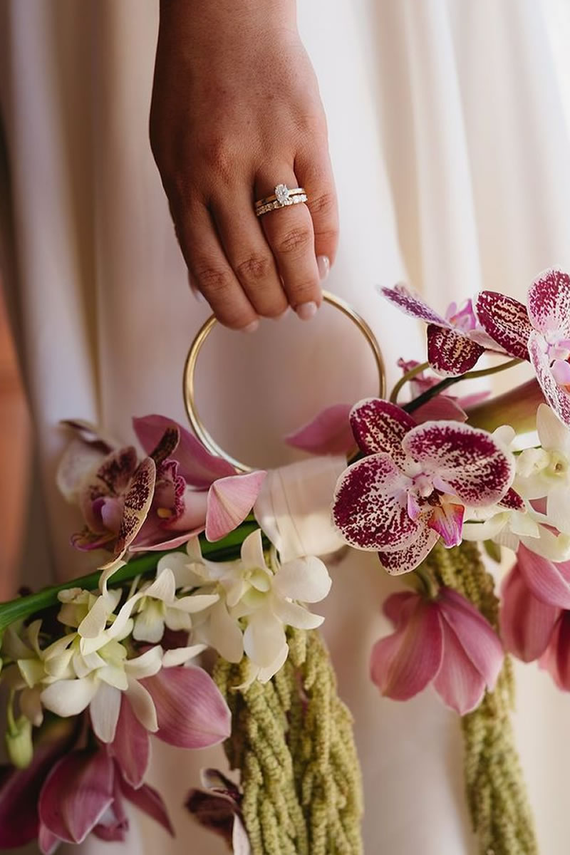 Los «Hoop Bouquets» son la alternativa perfecta para la novia moderna que busca algo artístico, cómodo y diferente. Esta tendencia está creciendo mucho porque, además de ser preciosa, es sumamente funcional.