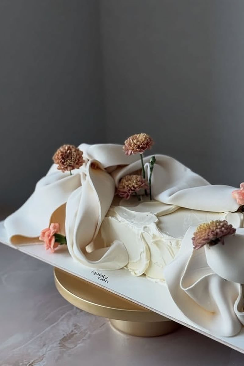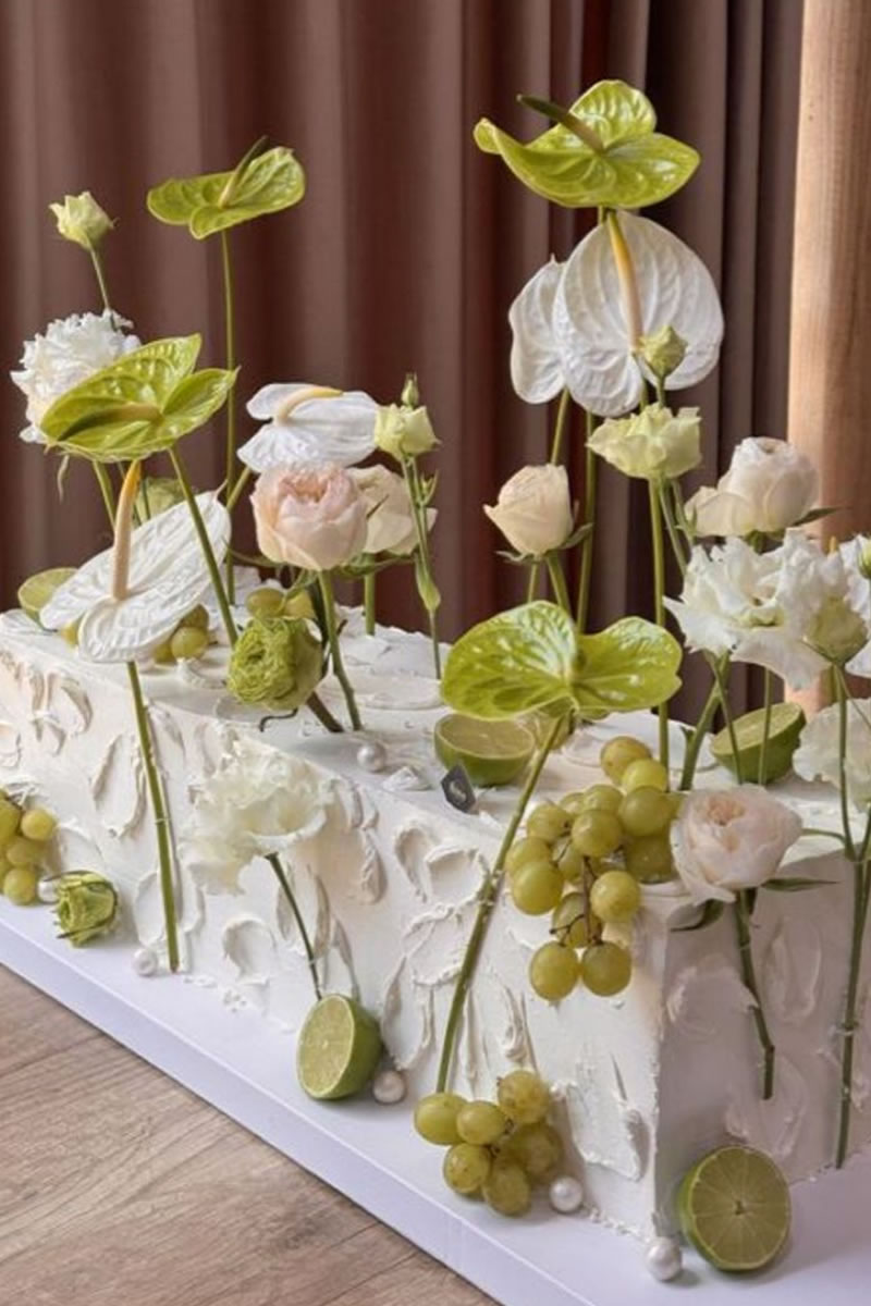 En este año los hemos visto por doquier, no cabe duda que los pasteles angostos y rectangulares se ha convertido en protagonistas absolutos de las celebraciones de boda 2025.