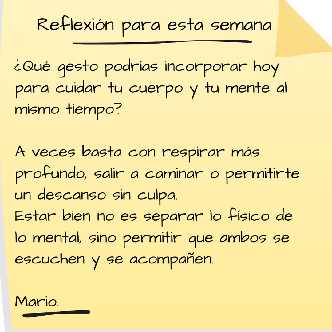 Por eso no se trata de que la mente controle al cuerpo, ni de que el cuerpo arrastre a la mente. Se trata de recordar que somos una unidad. Una unidad que necesita atención, descanso y cuidado profundo.
