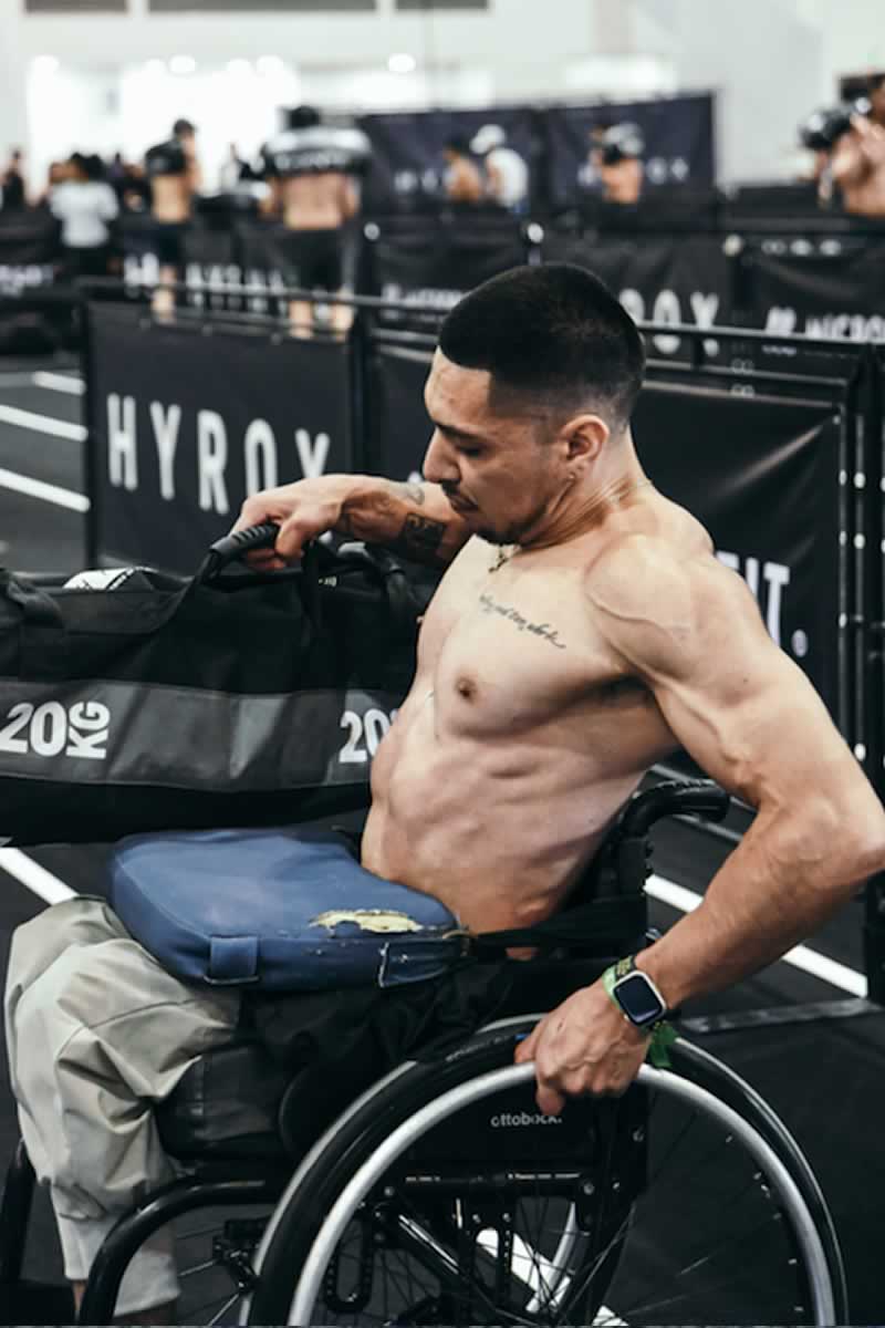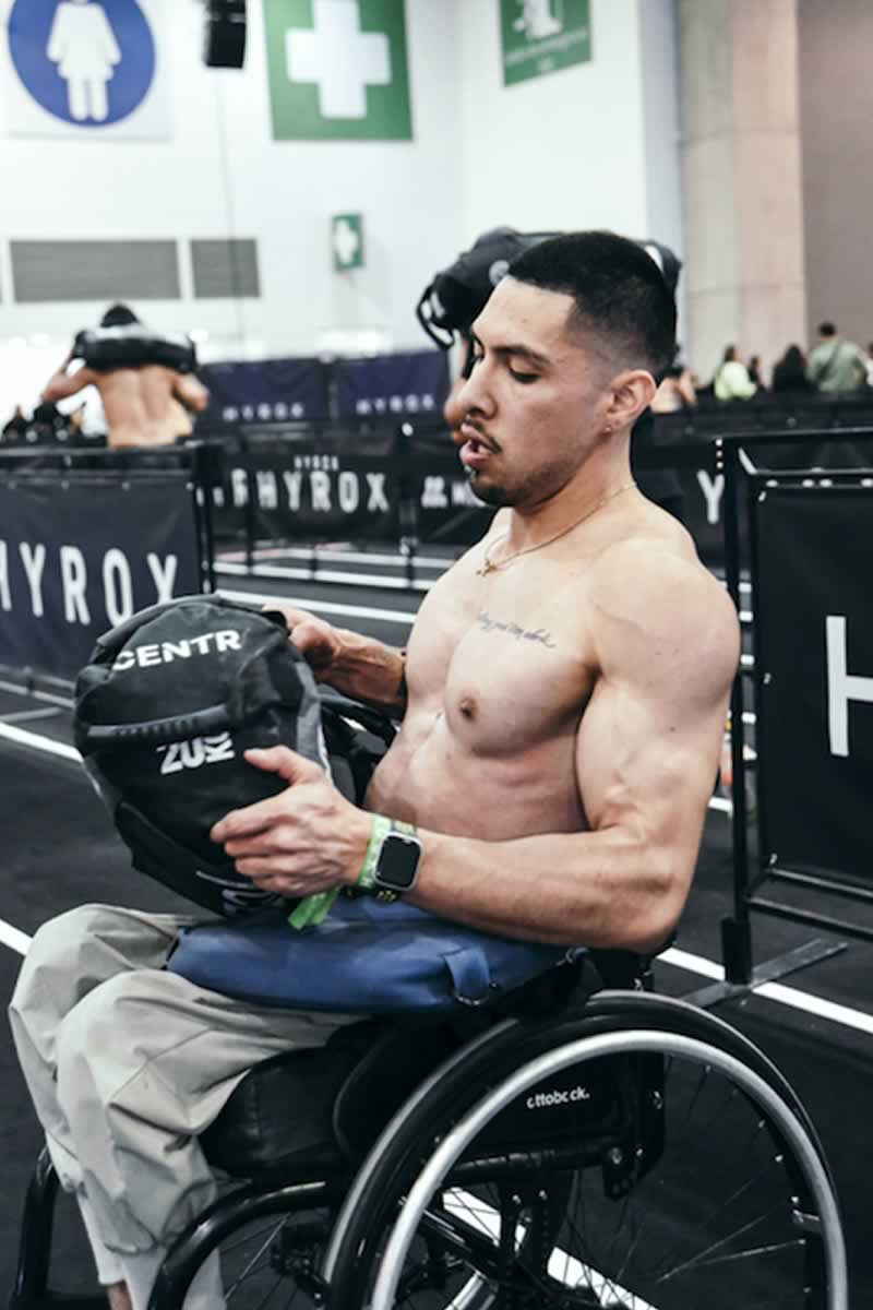 “Competí en HYR CDMX 2025 en la categoría Seated Without Hip Function (SWOHF) donde obtuve el primer lugar frente a 10 competidores en mi categoría. Llevo más de seis años entrenando CrossFit y ganar el HYROX me da mucho orgullo, me confirma que el trabajo arduo sí da los resultados que yo esperaba”, explica Rodrigo Velázquez, atleta de CrossFit adaptado, quien a los 22 años tuvo una lesión medular por arma de fuego.