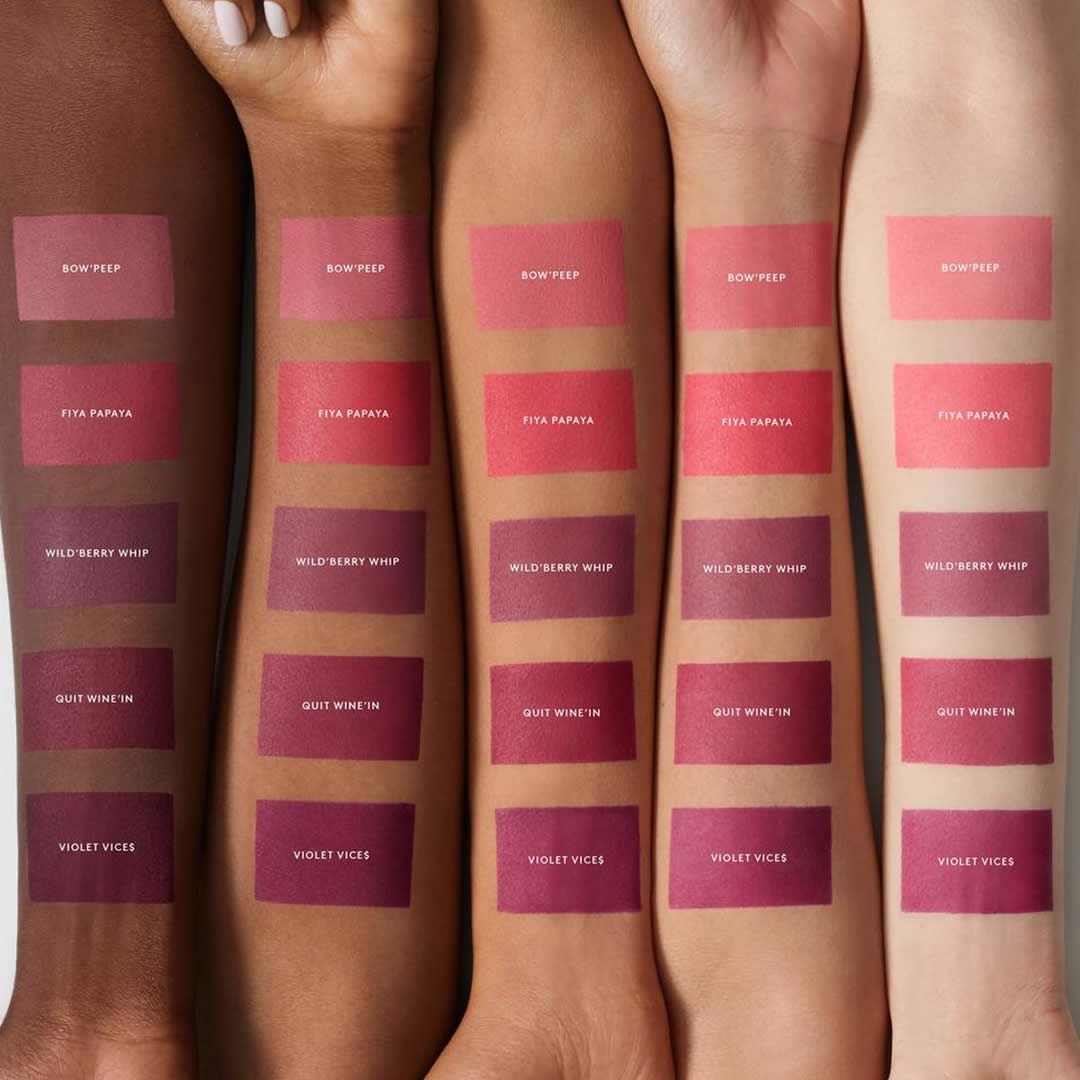 Shake ‘N Play Buildable Liquid Blush está disponible en cinco tonos universalmente favorecedores: ‘Bow Peep’ – rosa, para tonos claros a medios; ‘Fiya Papaya’ – coral, para tonos claros a medio-profundos; ‘Wild’Berry Whip’ (¡el tono favorito de Rihanna!) – rosa malva, para tonos claros a medio-profundos; ‘Quit Wine’In’ – vino ciruela, para tonos medios a profundos; ‘Violet Vice$’ – mora, para tonos medios a profundos.
