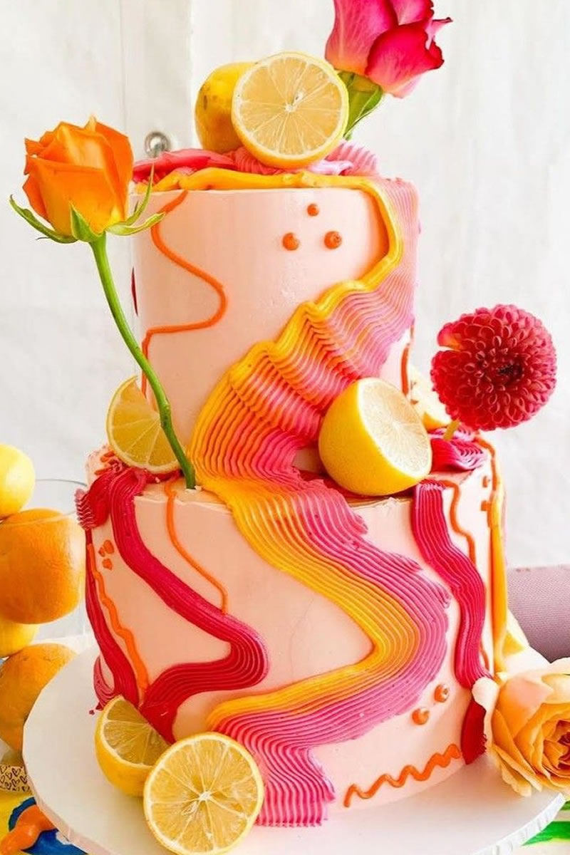 Los modernos pasteles conocidos como caos son creaciones explosivas que saturan los sentidos: colores intensos, múltiples texturas y elementos decorativos por todos lados. En redes sociales se han hecho virales como “chaos cakes”, con dripping de colores neón, confeti comestible, stickers de azúcar y mucha creatividad.