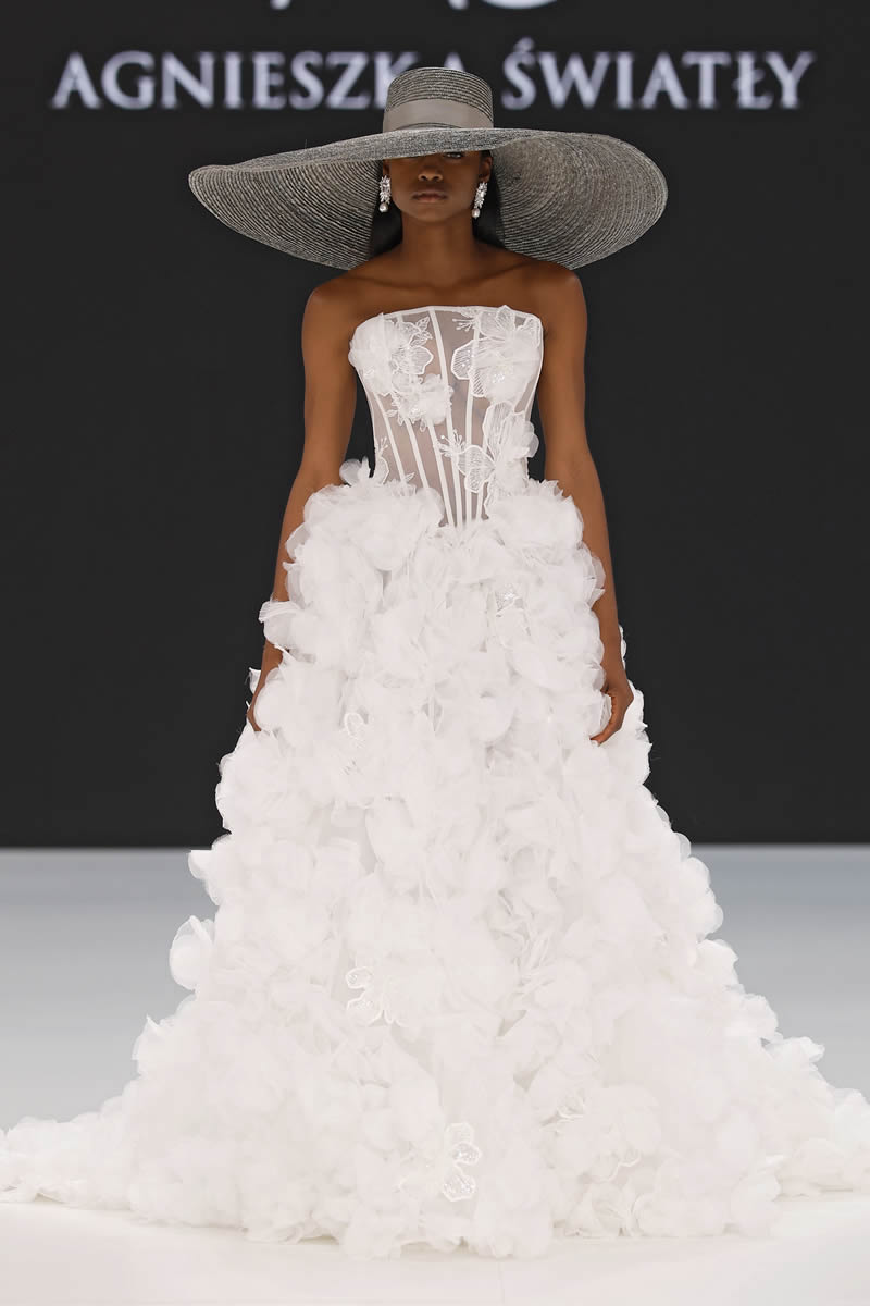 Piensa en seda fluida, encaje delicado y detalles bordados a mano que añaden un toque de opulencia. Cuerpos estructurados, trenes dramáticos y adornos sutiles pero llamativos crean un equilibrio perfecto entre el minimalismo moderno y el romance atemporal. Cada vestido está diseñado para hacer una declaración, asegurando que cada novia se sienta segura, radiante y elegantemente chic en su día especial. Agnieszka Światły es una reconocida diseñadora de moda nupcial polaca conocida por sus elegantes y modernos vestidos de novia.
