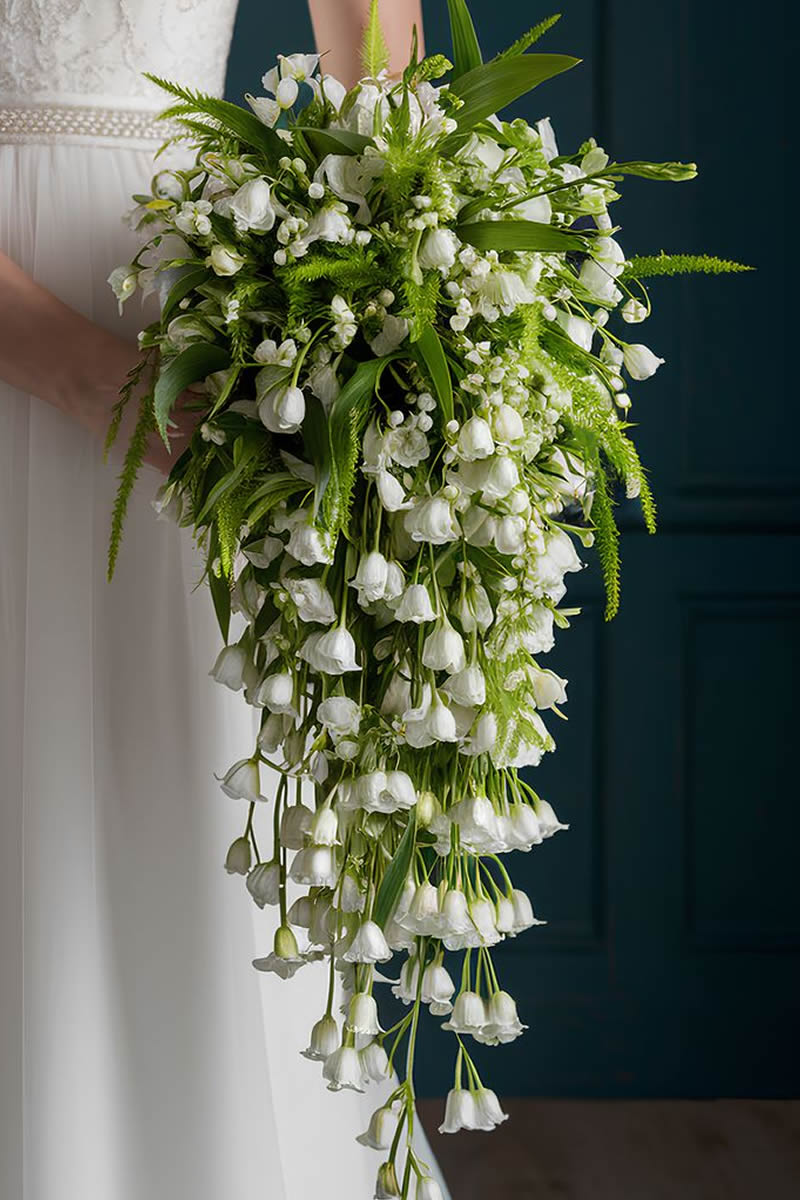 Románticas ideas de ramos en cascada que son perfectos para todo tipo de novias