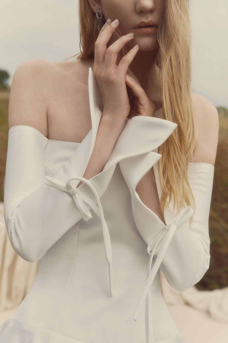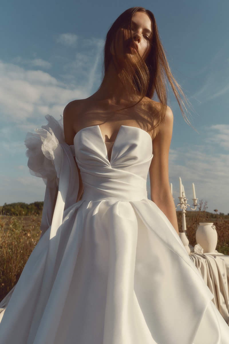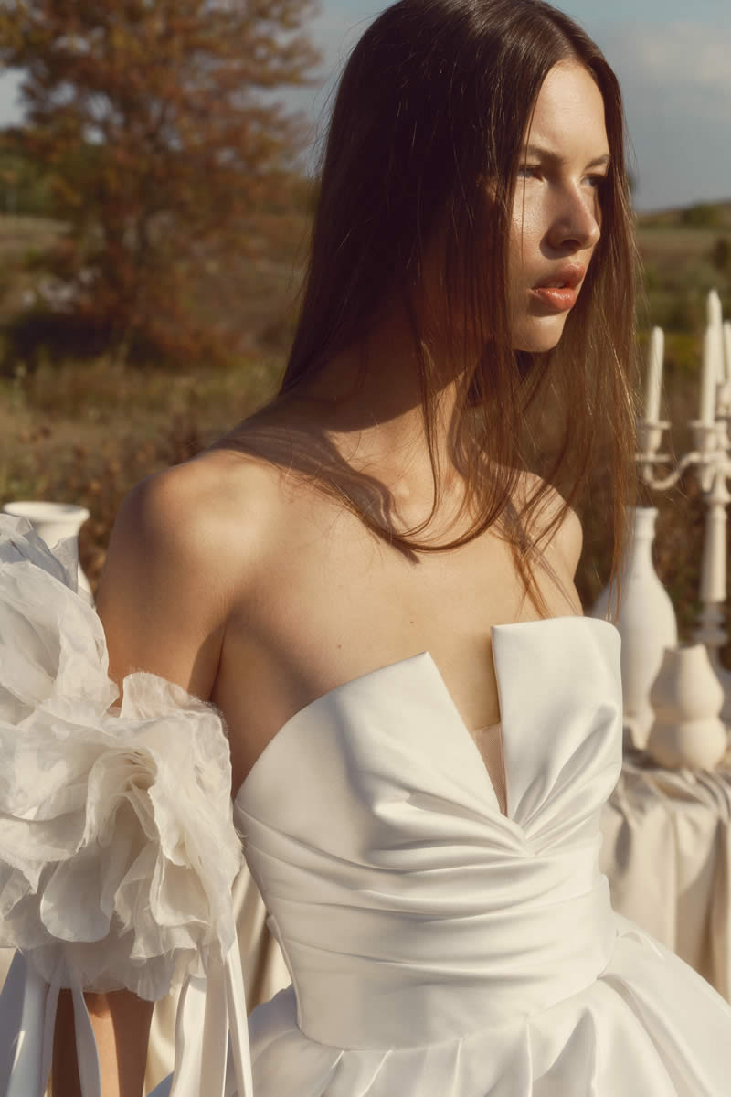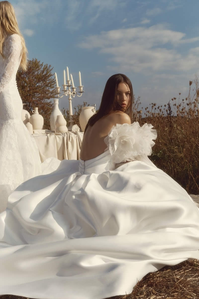 La más reciente colección nupcial de Alyne, por Rita Vinieris, celebra el equilibrio entre estructura y suavidad: un estudio de sobriedad y romanticismo. Cada vestido está confeccionado para la mujer cuya discreta seguridad define su presencia.