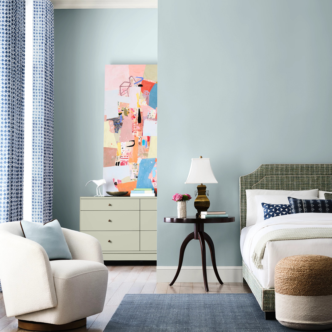 Quietude SW 6212 o tonos como Sea Salt SW 6204, ofrecen matices entre verde y azul que evocan calma costera, reflejando la luz natural y haciendo de la recámara un espacio más iluminado pero siempre tranquilo.