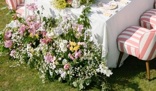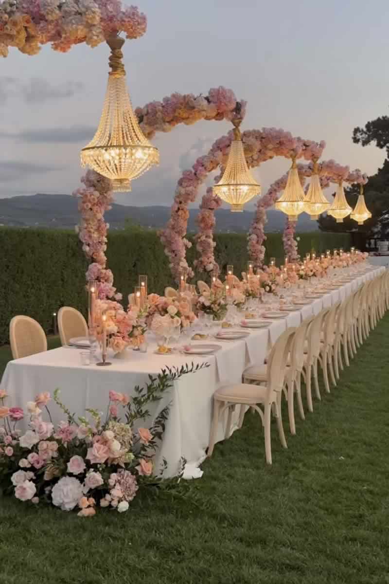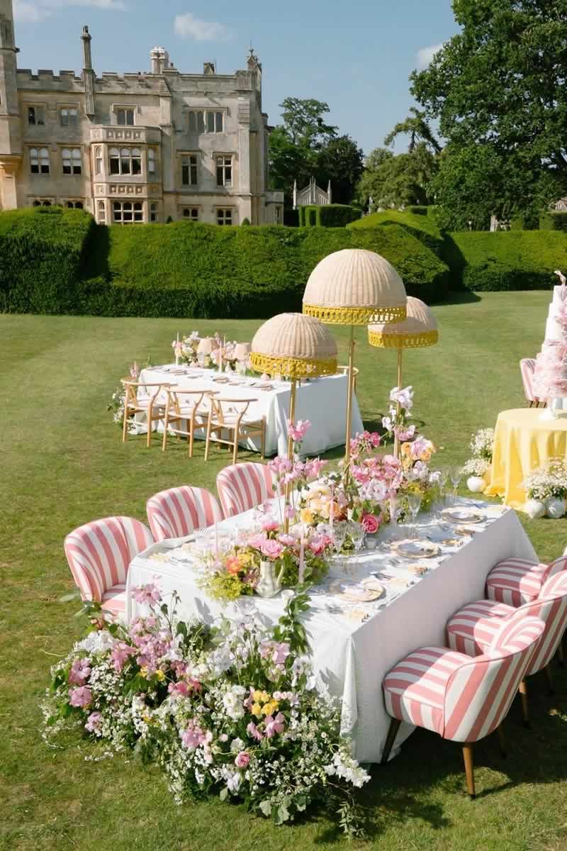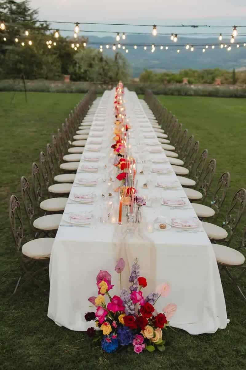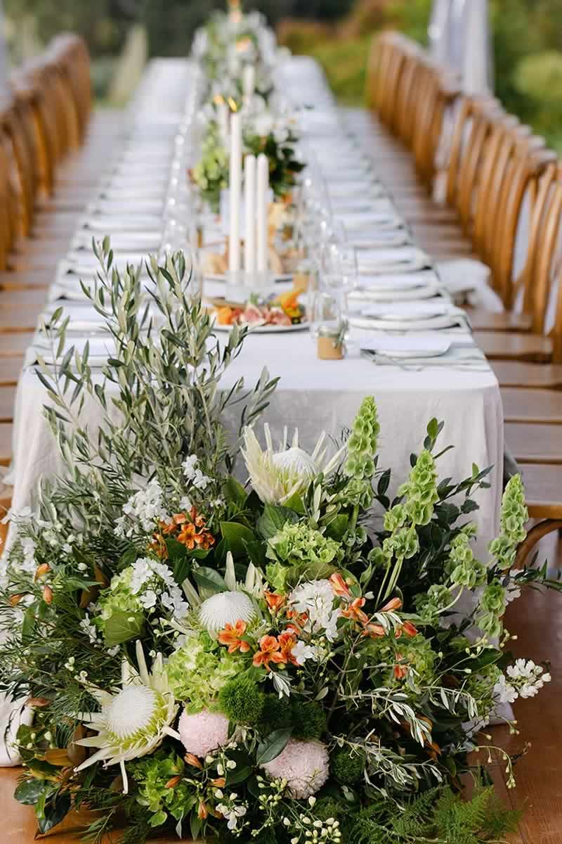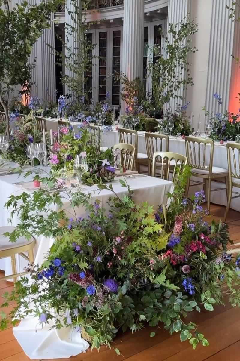 Esa modalidad donde parece que las flores están «plantadas» y crecen directamente desde el suelo se conoce técnicamente como meadow arrangement, arreglo de pradera o flores de piso. Aporta una sensación de abundancia y frescura, como si la boda se estuviera celebrando en un jardín secreto, incluso si es en un salón cerrado.