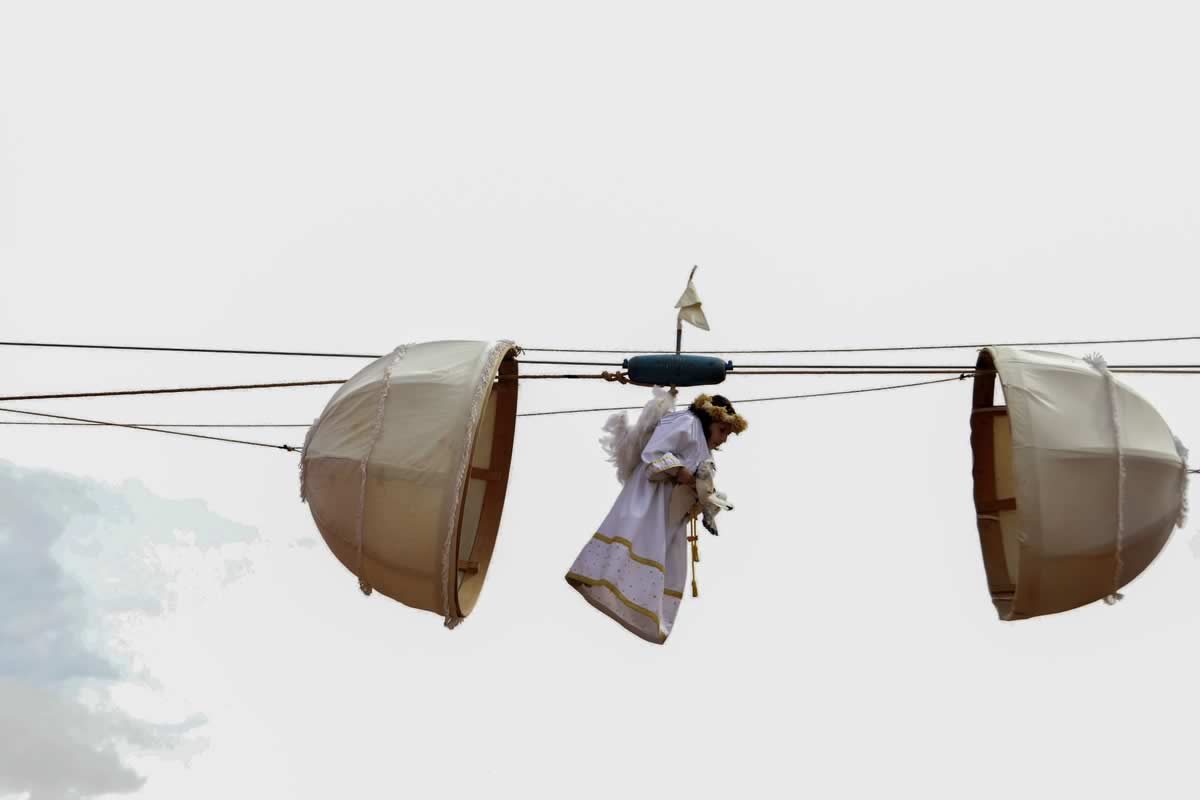 El pequeño elegido vive una experiencia única: días de preparación, ensayos del descenso, el peso de la tradición sobre sus hombros infantiles. Y luego, ese momento irrepetible de volar sobre la plaza, ante la mirada de todo el pueblo y los visitantes, convertido en mensajero divino, en símbolo de esperanza y vida nueva.