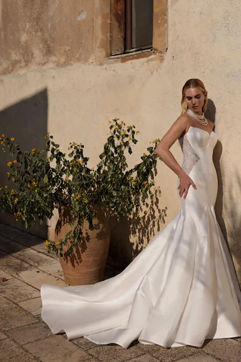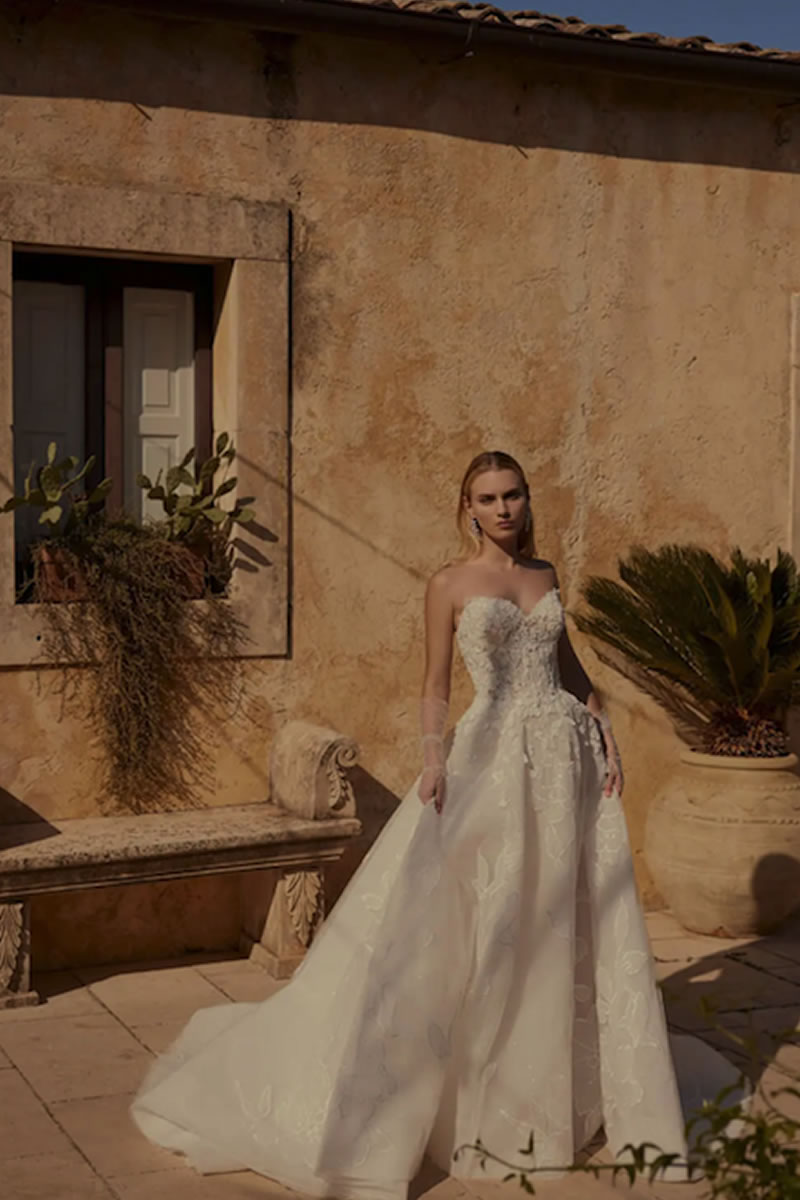 Con la belleza atemporal de Italia como telón de fondo, “Feminine” trasciende lo convencional gracias a las características únicas e independientes de cada vestido. La línea Couture de la firma nupcial Modeca se define como vanguardista, la elección perfecta para la novia segura y audaz