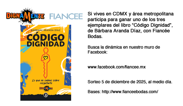 Si vives en CDMX y área metropolitana participa para ganar uno de los tres ejemplares del libro “Código Dignidad”, de Bárbara Aranda Díaz, con Fiancée Bodas